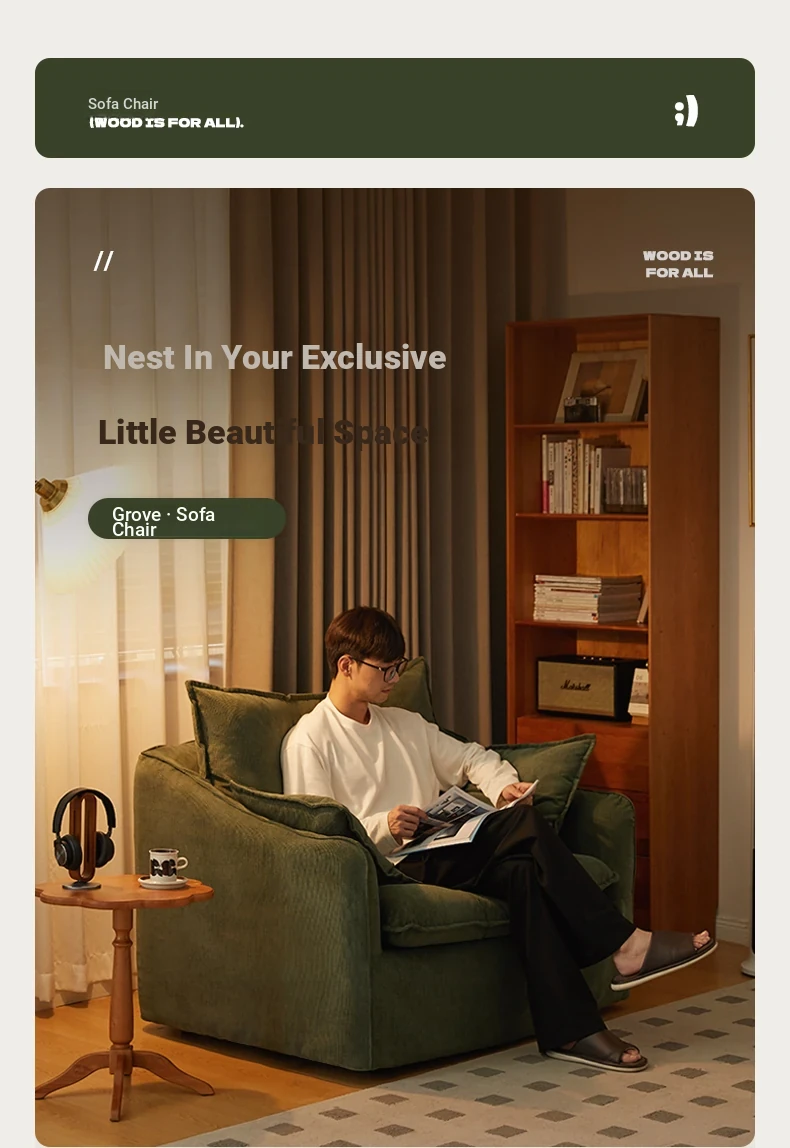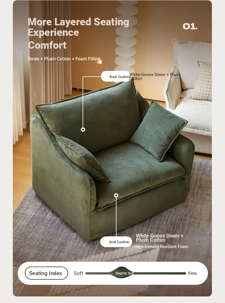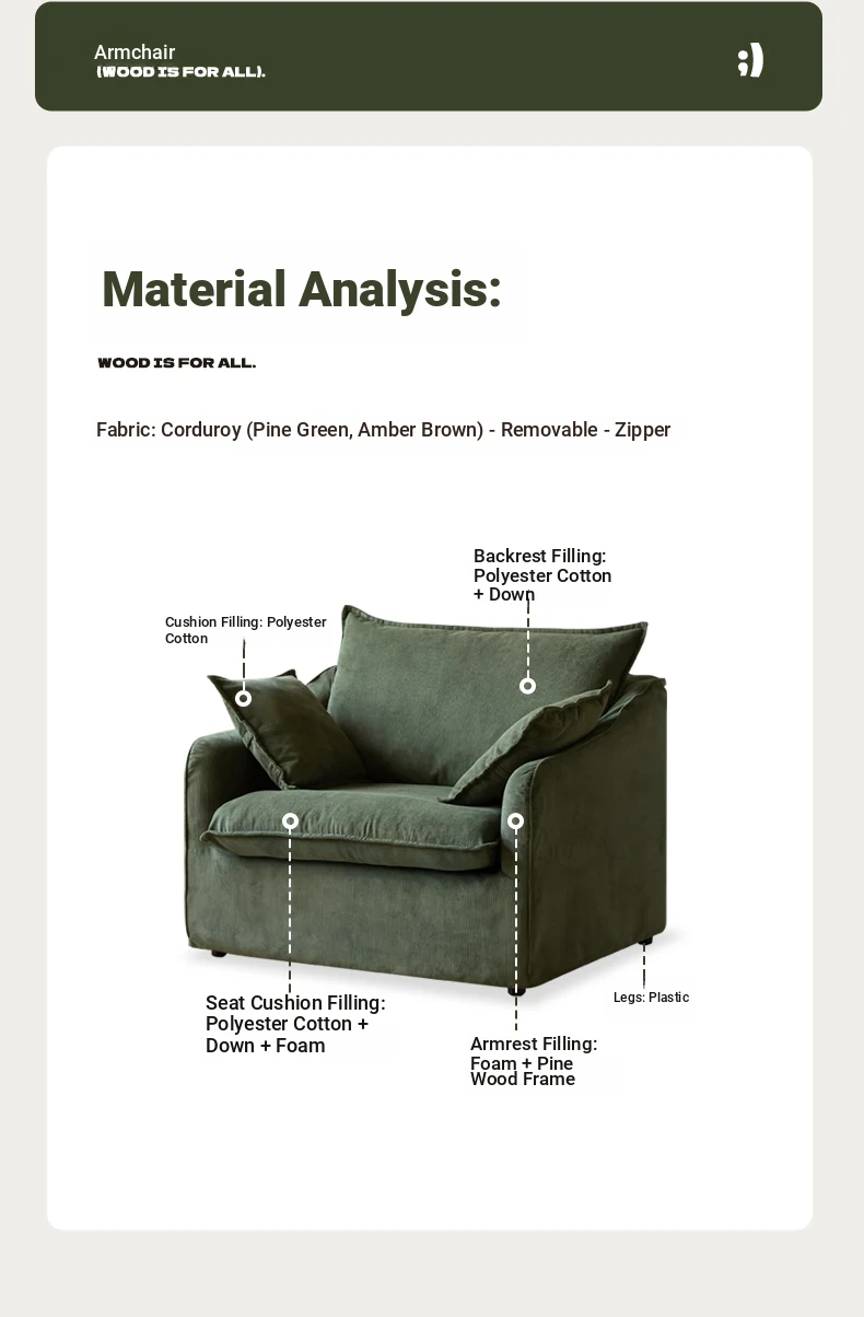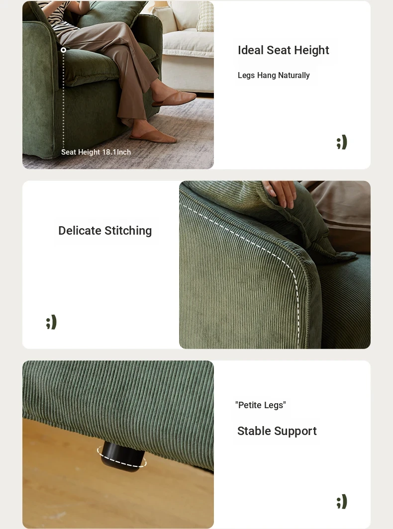 43.70 in sofa chair (corduroy pine needle Green)(43.70in*37.40in*38.19in)S05200