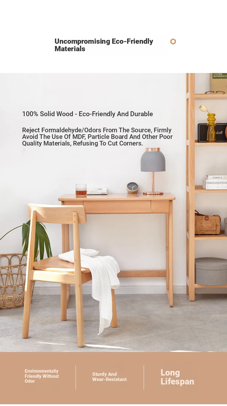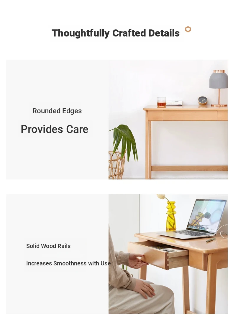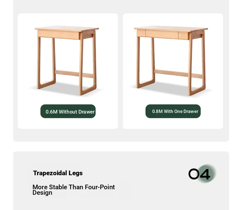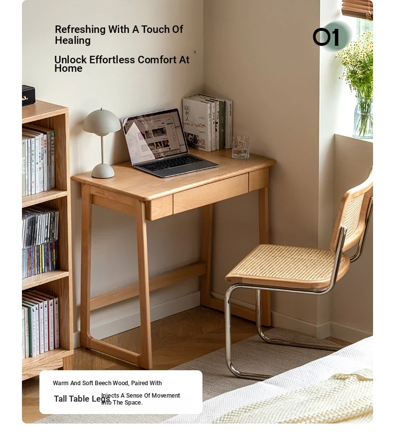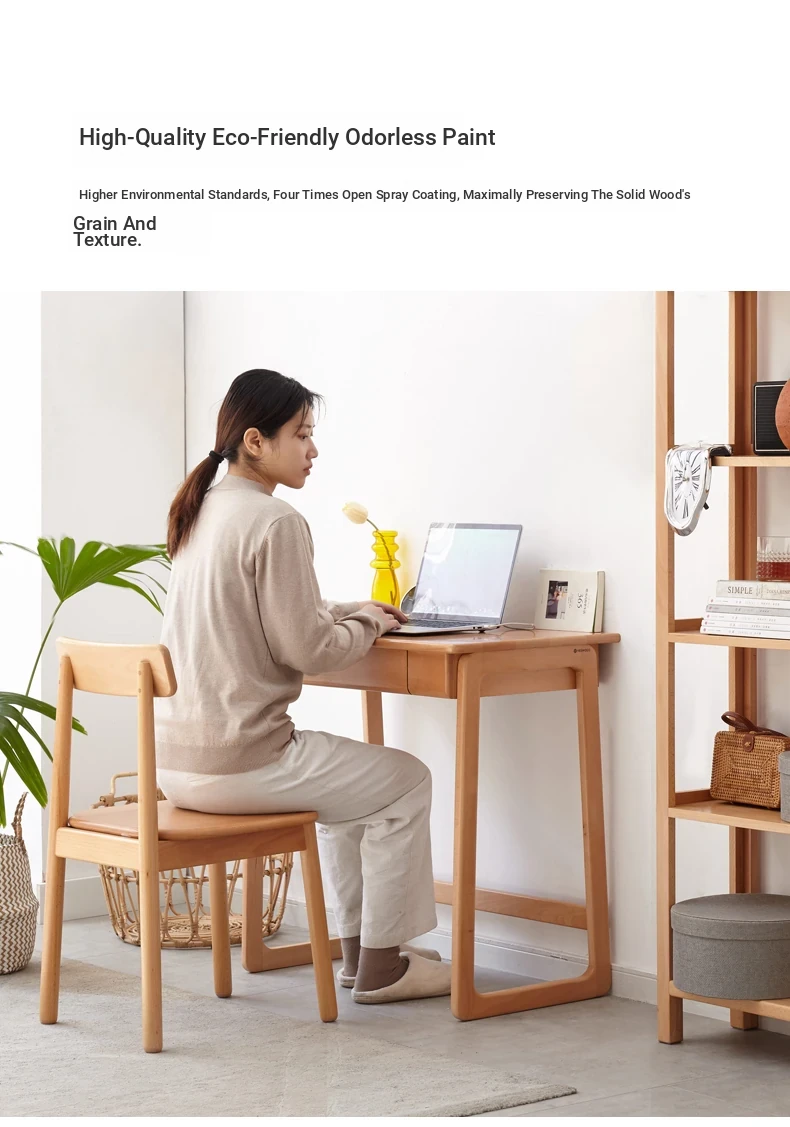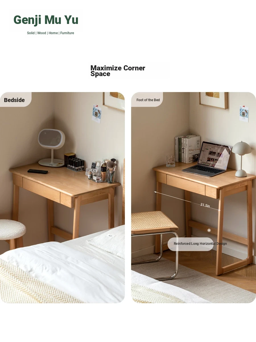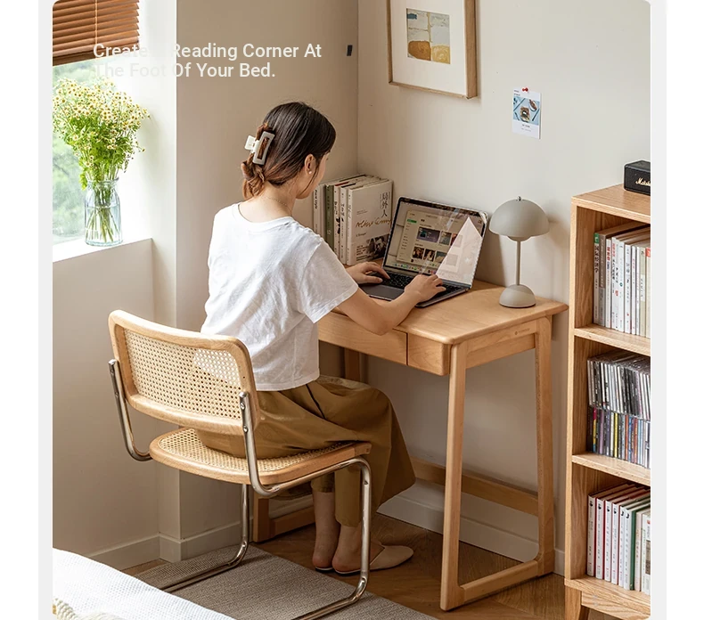 Genji Solid Wood Small Study Desk - Minimalist Computer Desk with U-Shaped Legs for Home Office or Small Spaces - Ideal for Study and Work