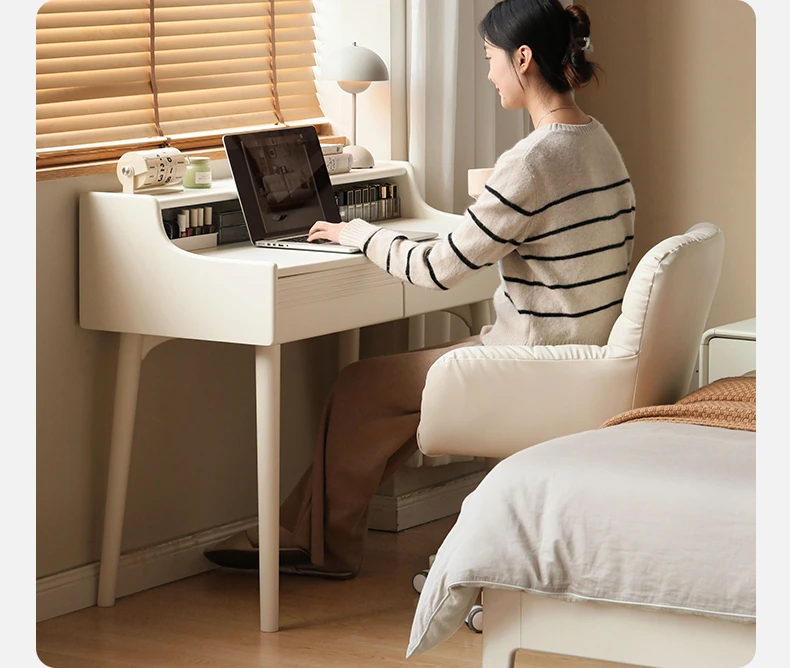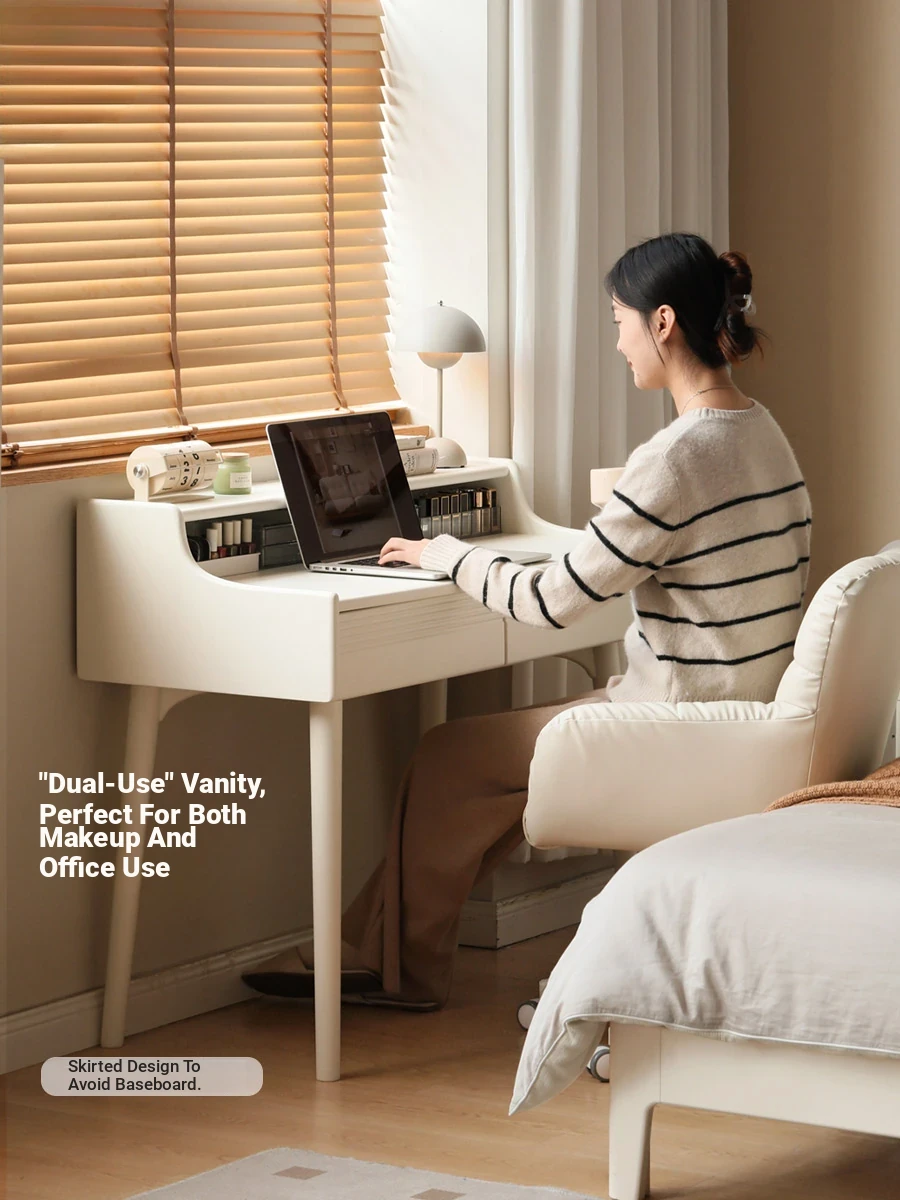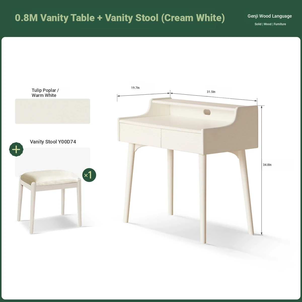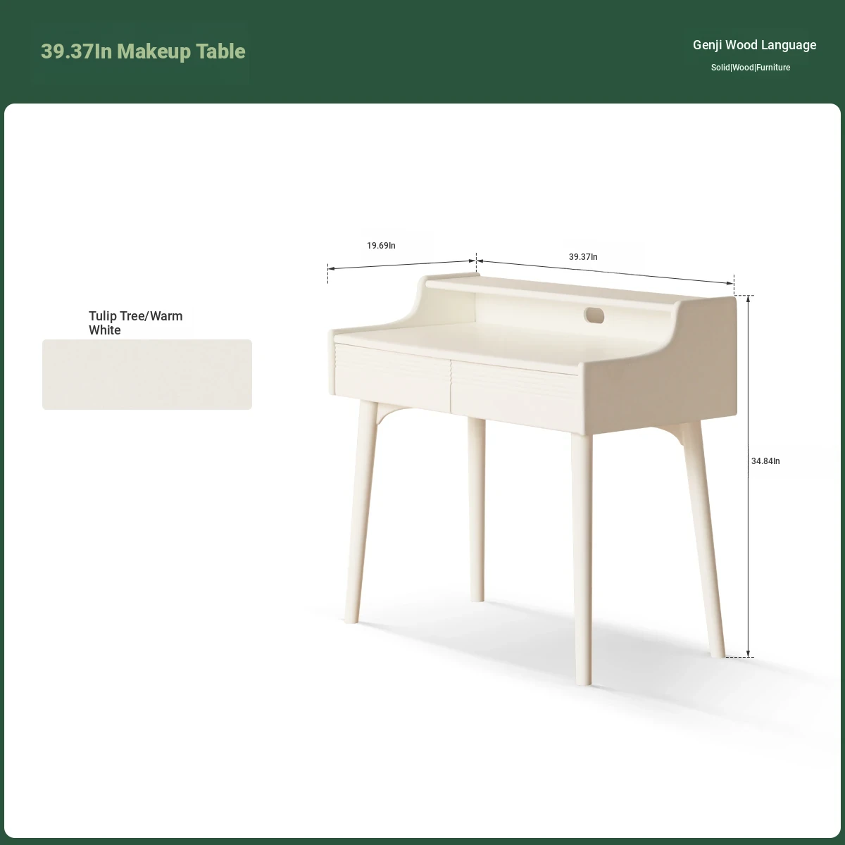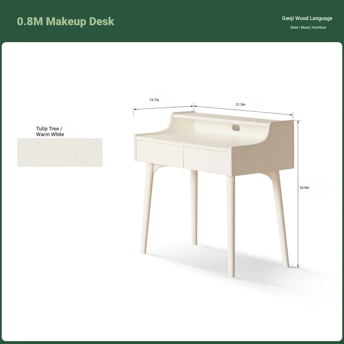Genji Solid Wood Vanity Table - Creamy Modern Makeup Desk and Computer Table, All-in-One Design in Sleek White Finish, Perfect for Minimalist Spaces.