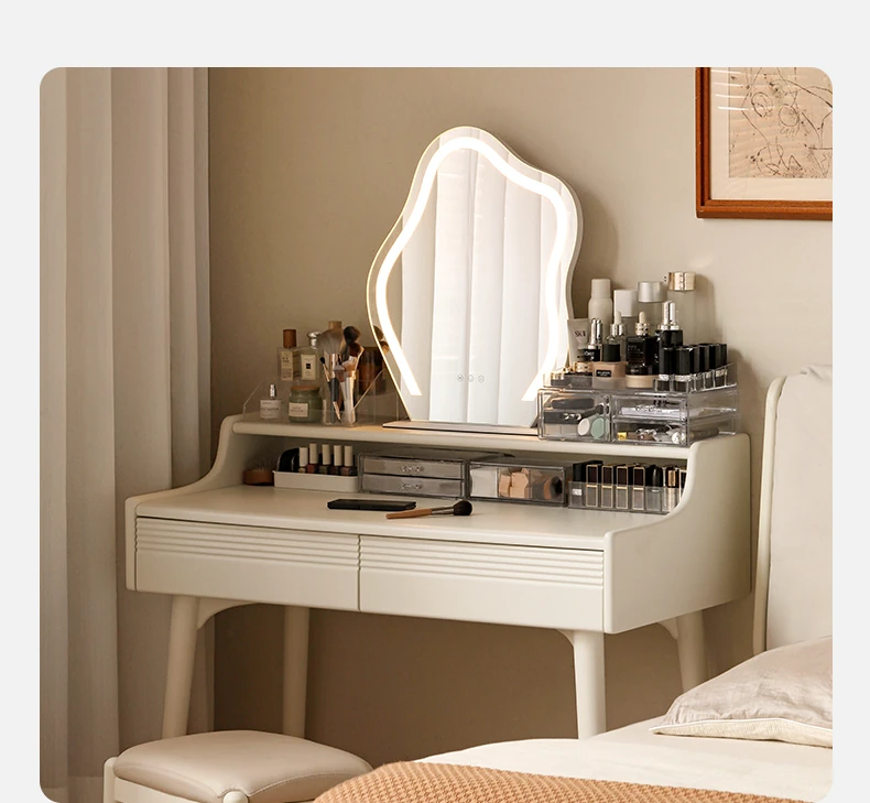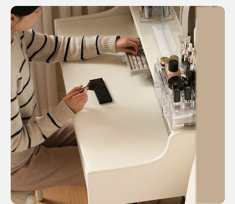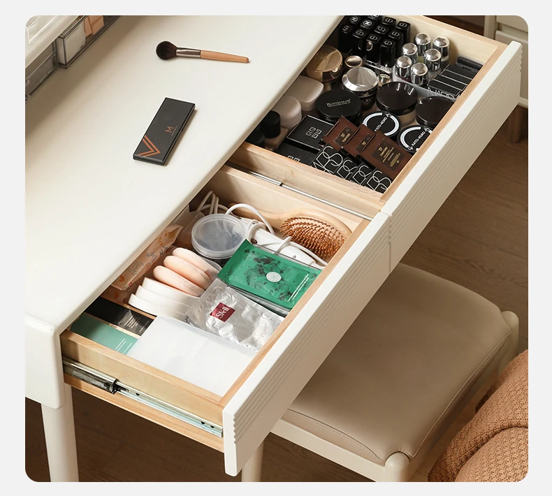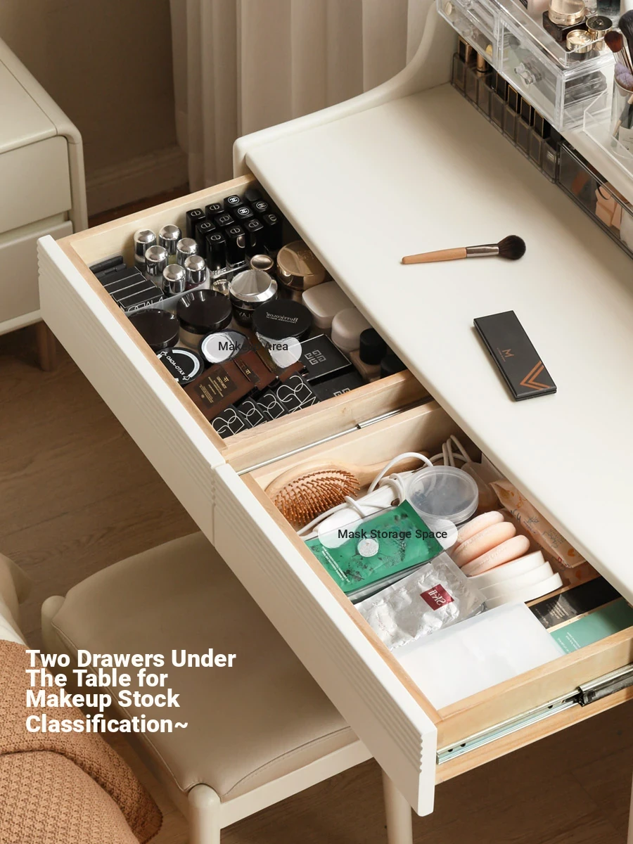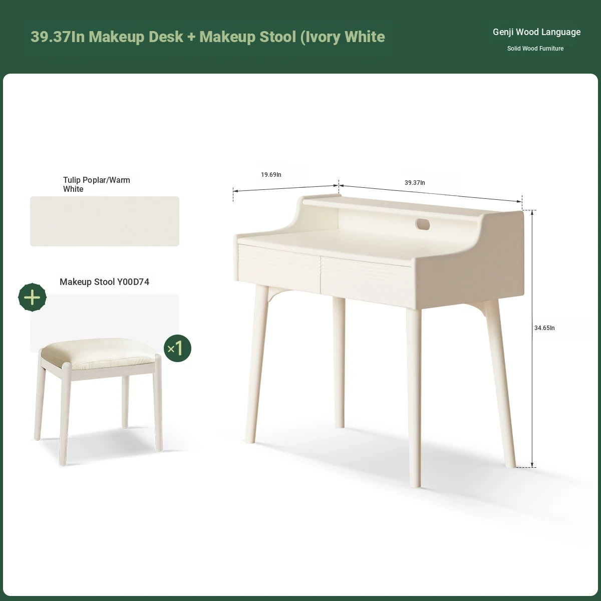 (Warm White) 39.37 in Dressing Table + Dressing Stool (Milky White Y00D74)Y211D13