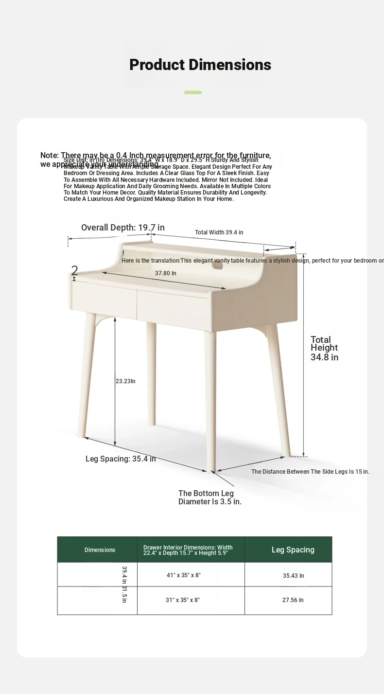 (Warm White) 39.37 in Cosmetic Table (39.37in*19.69in*34.84in)Y211D13