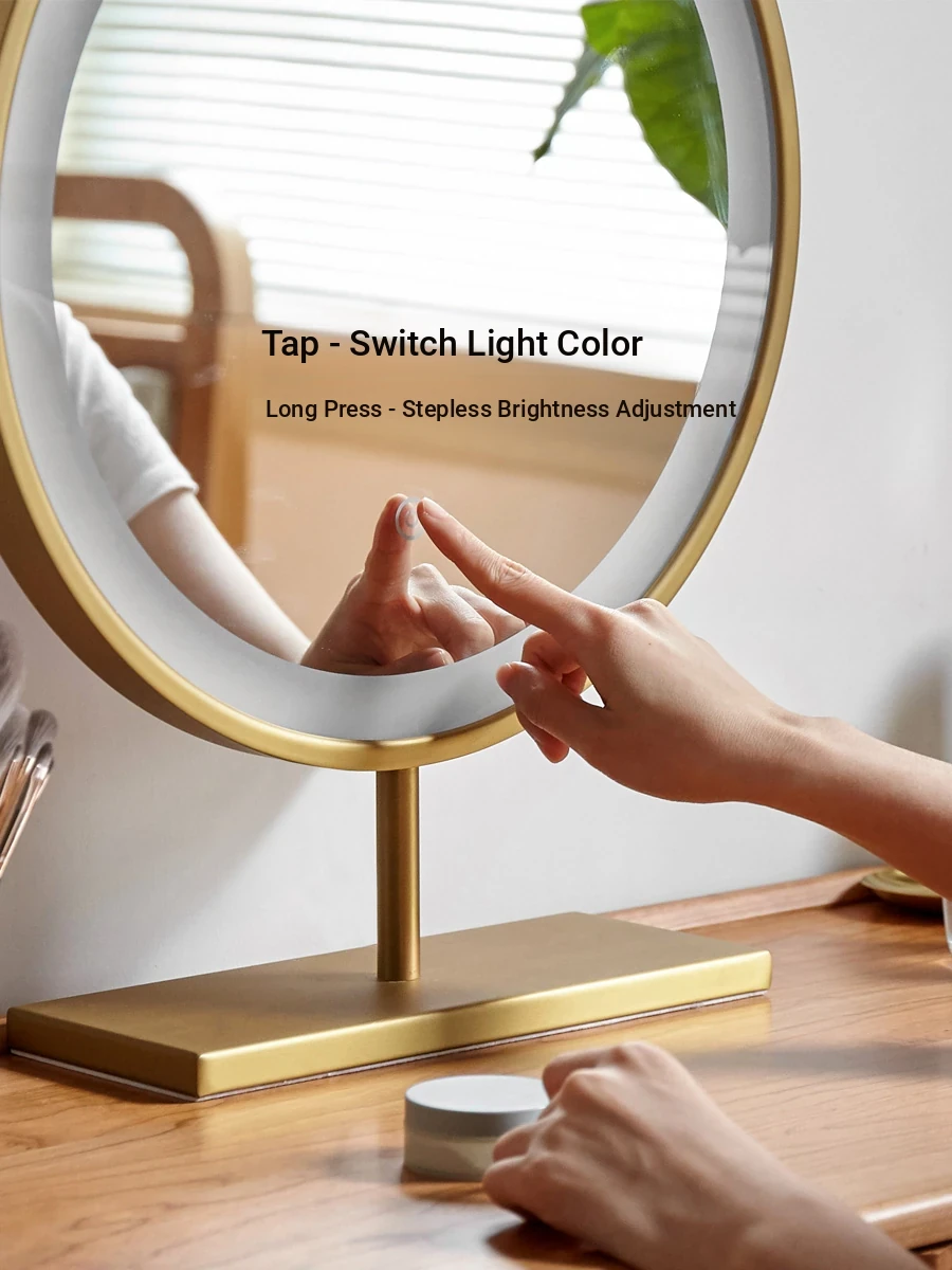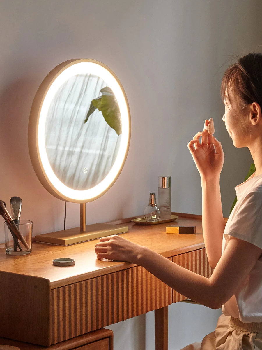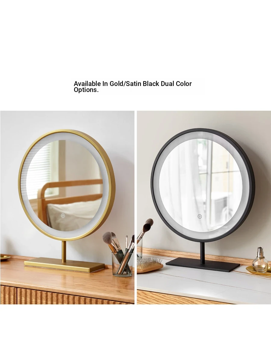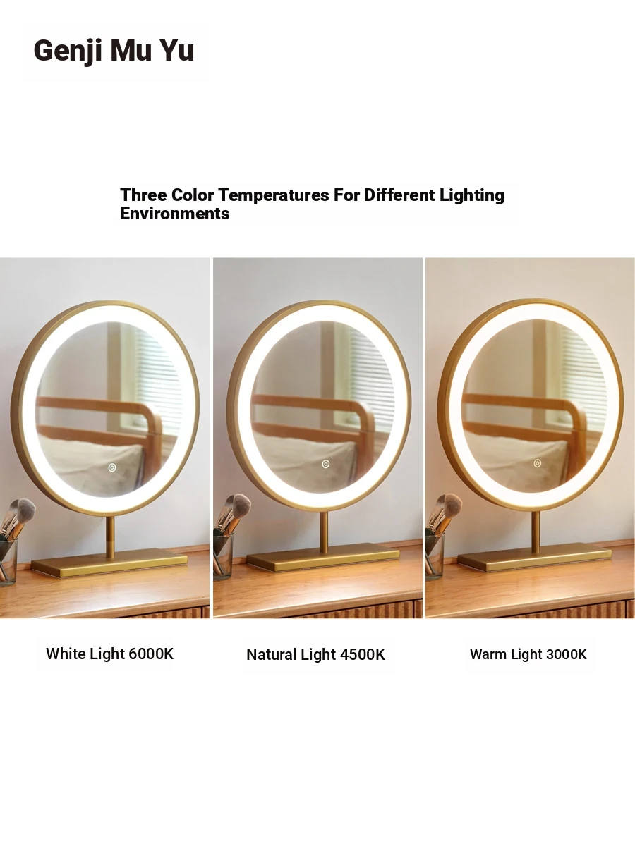 Genji Wood Luxury LED Makeup Mirror - Stylish Round Tabletop Vanity Mirror for Home Use, Perfect for Beauty and Grooming