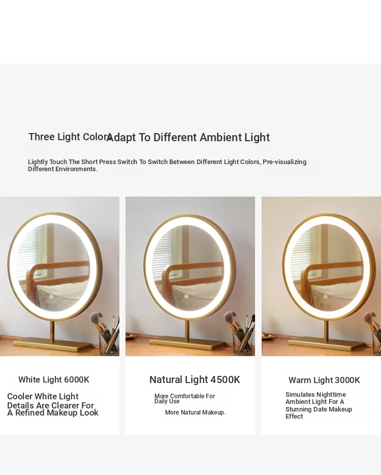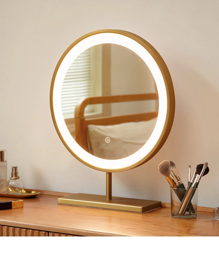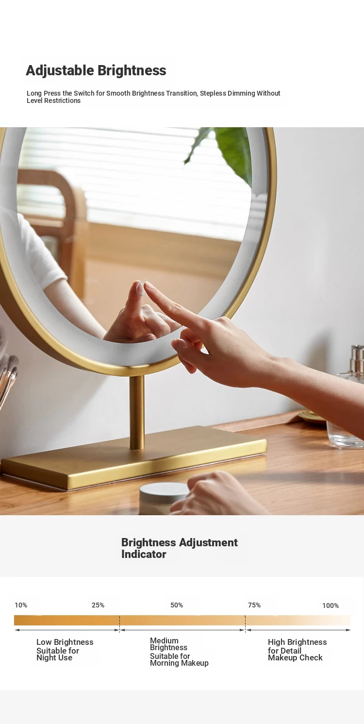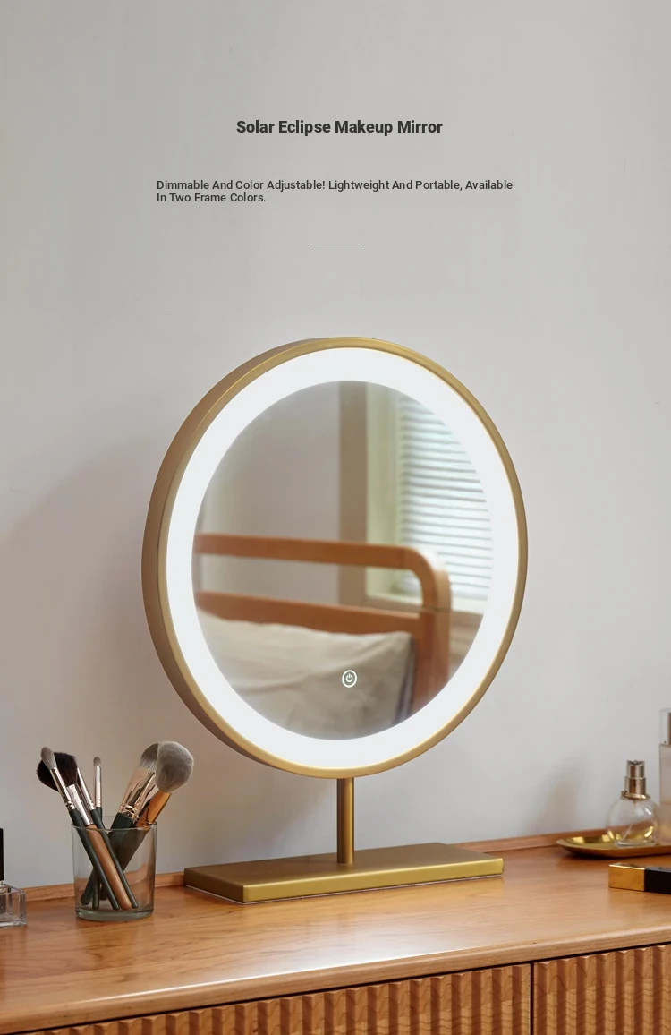 Genji Wood Luxury LED Makeup Mirror - Stylish Round Tabletop Vanity Mirror for Home Use, Perfect for Beauty and Grooming