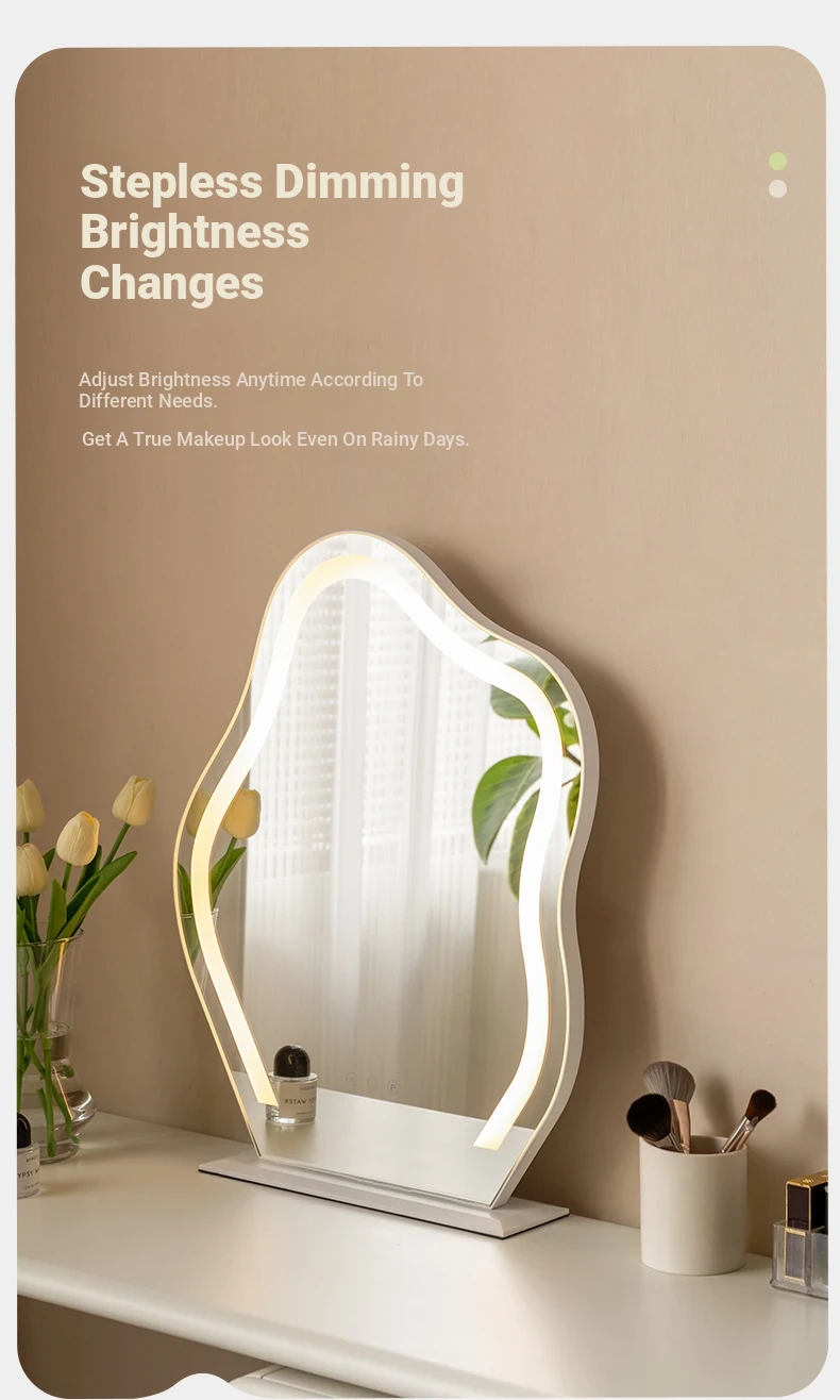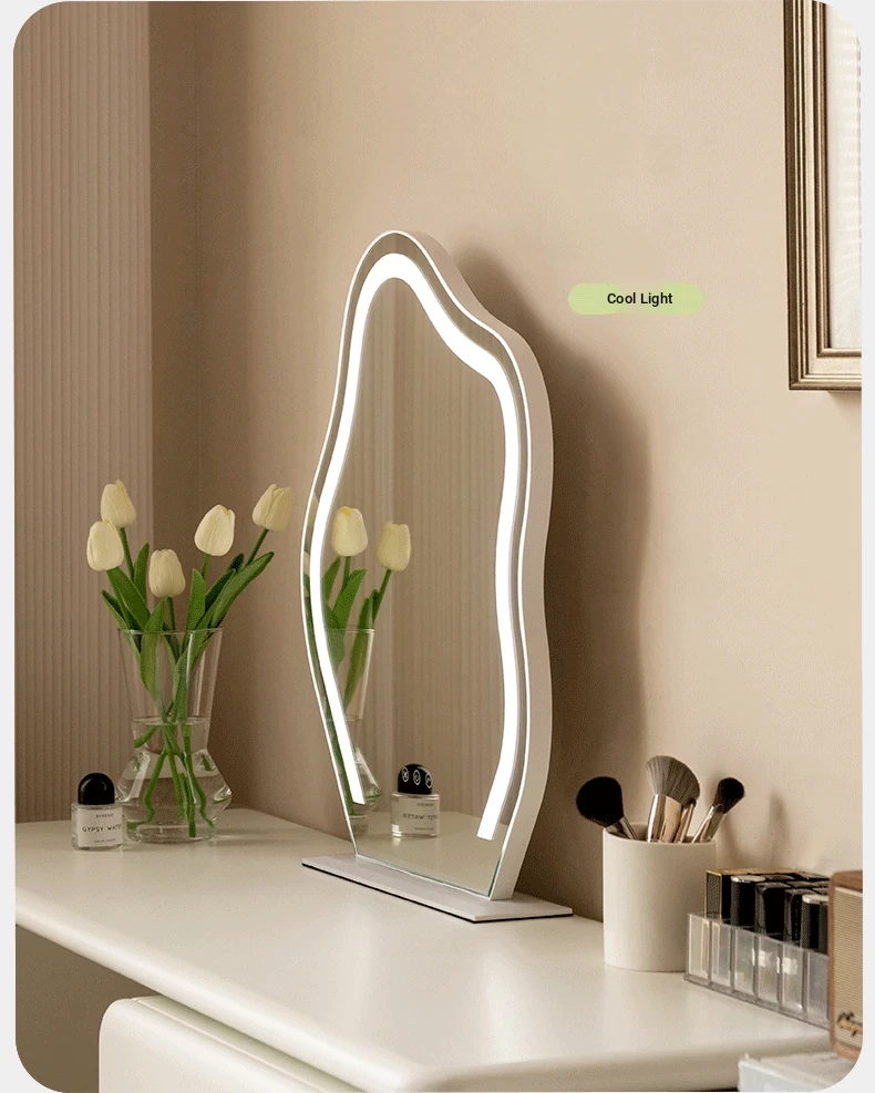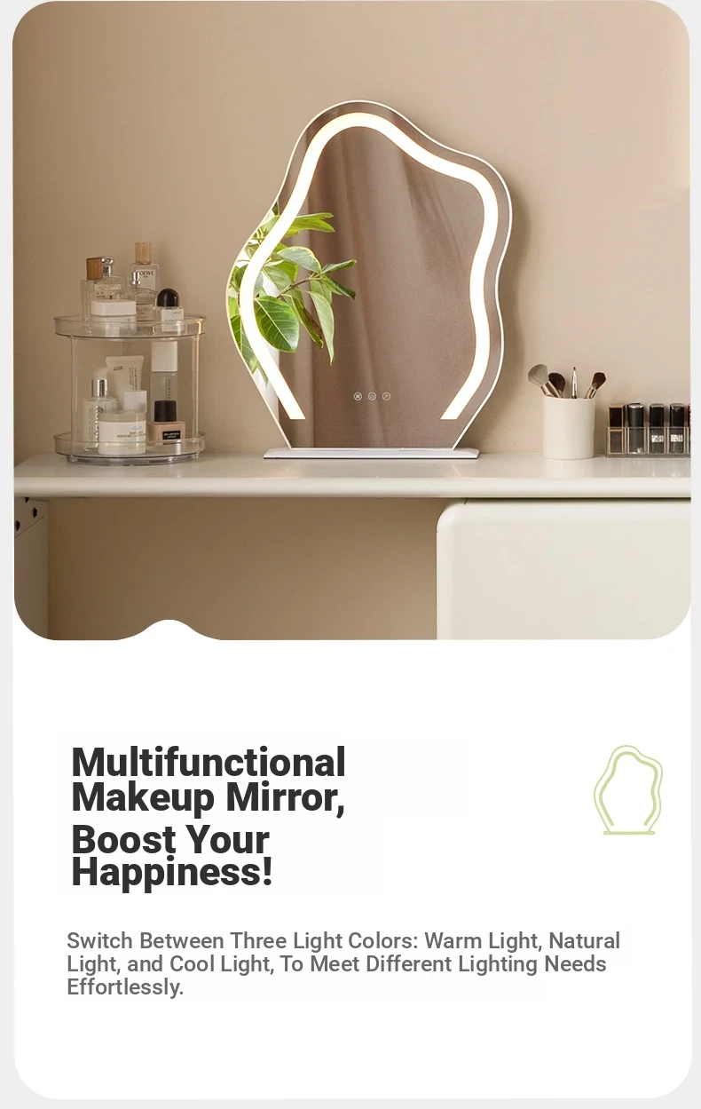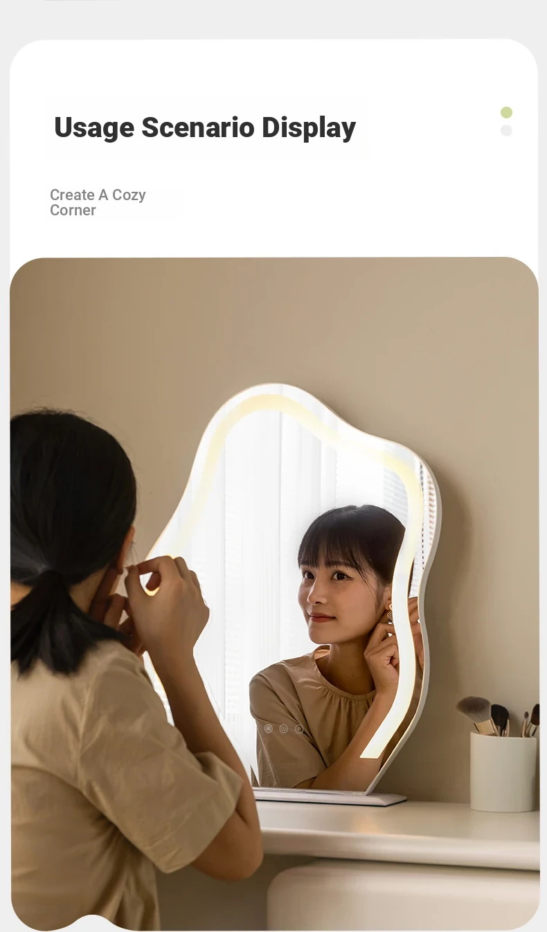Genji Wood Luxury Makeup Mirror - Creamy Minimalist LED Vanity Mirror for Bedroom, Smart Lighted and Shatterproof Design