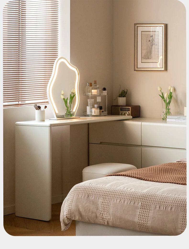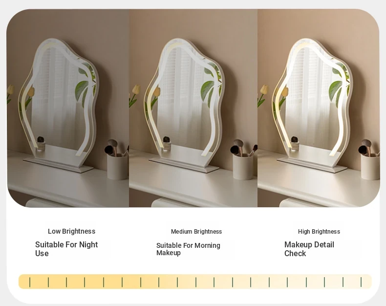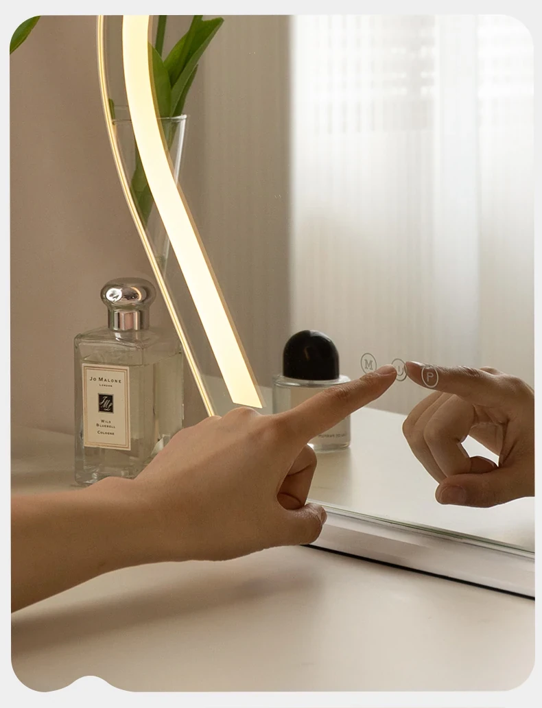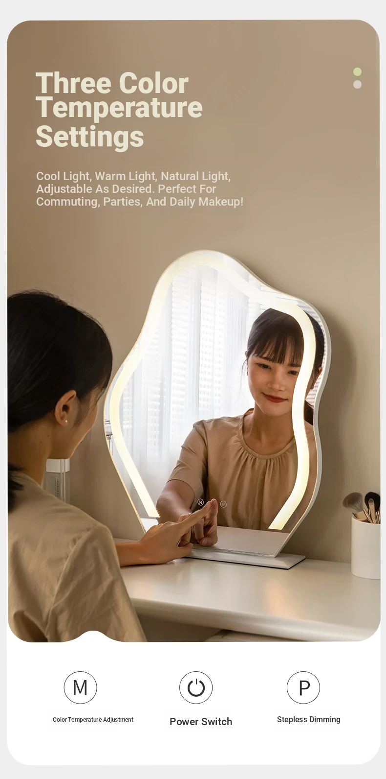 Genji Wood Luxury Makeup Mirror - Creamy Minimalist LED Vanity Mirror for Bedroom, Smart Lighted and Shatterproof Design