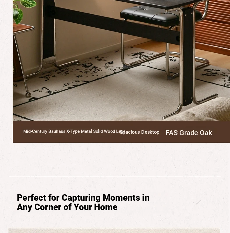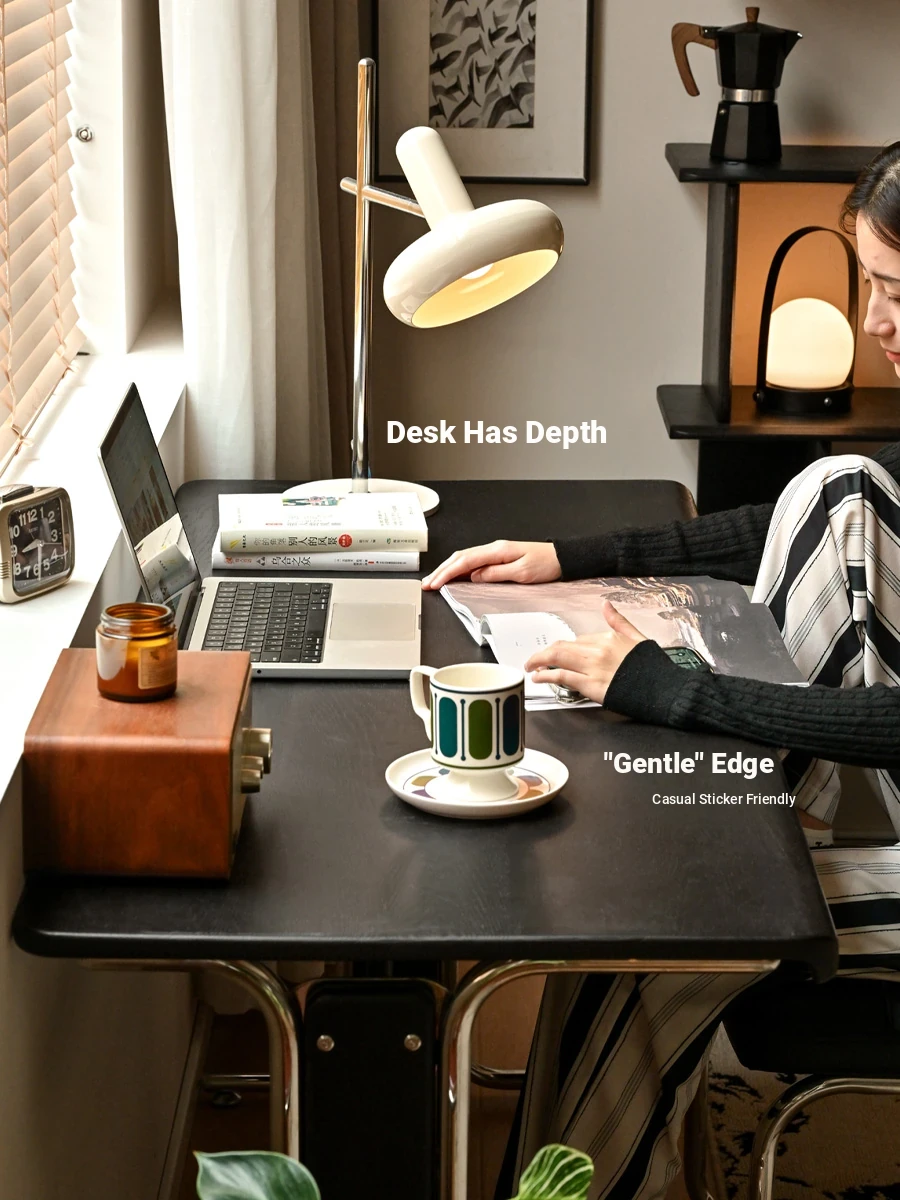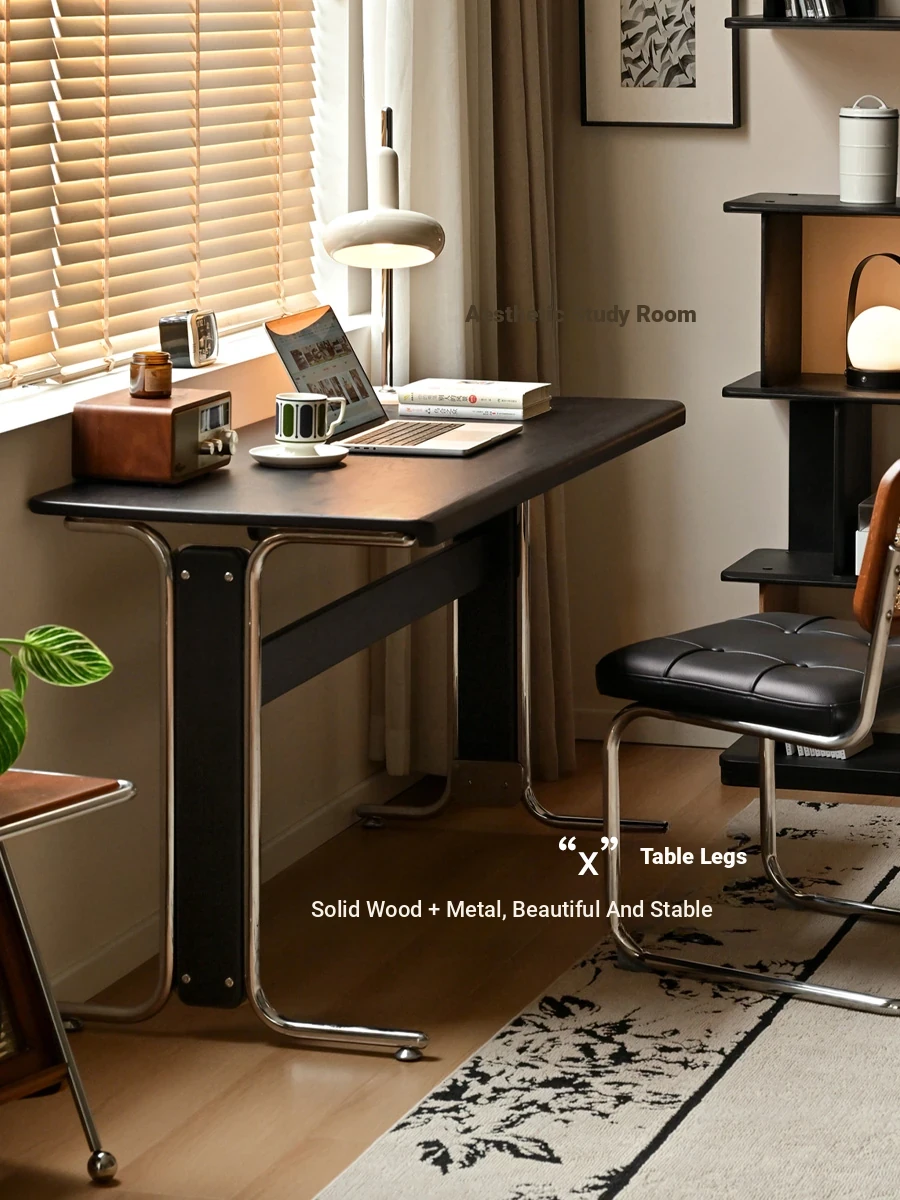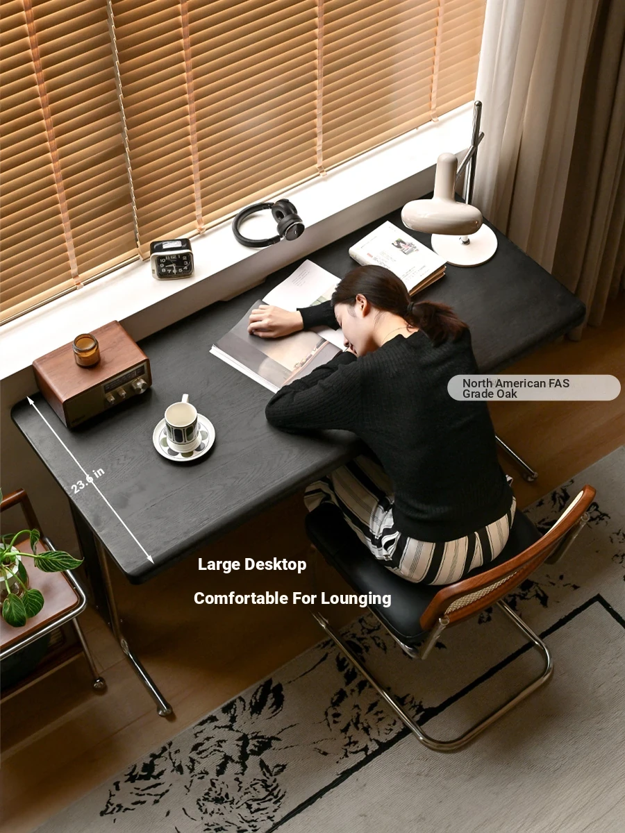 Genji Wood Simple Solid Wood Desk - Minimalist Bauhaus Black Computer Desk for Home Office, Oak Writing Table Perfect for Your Study Space