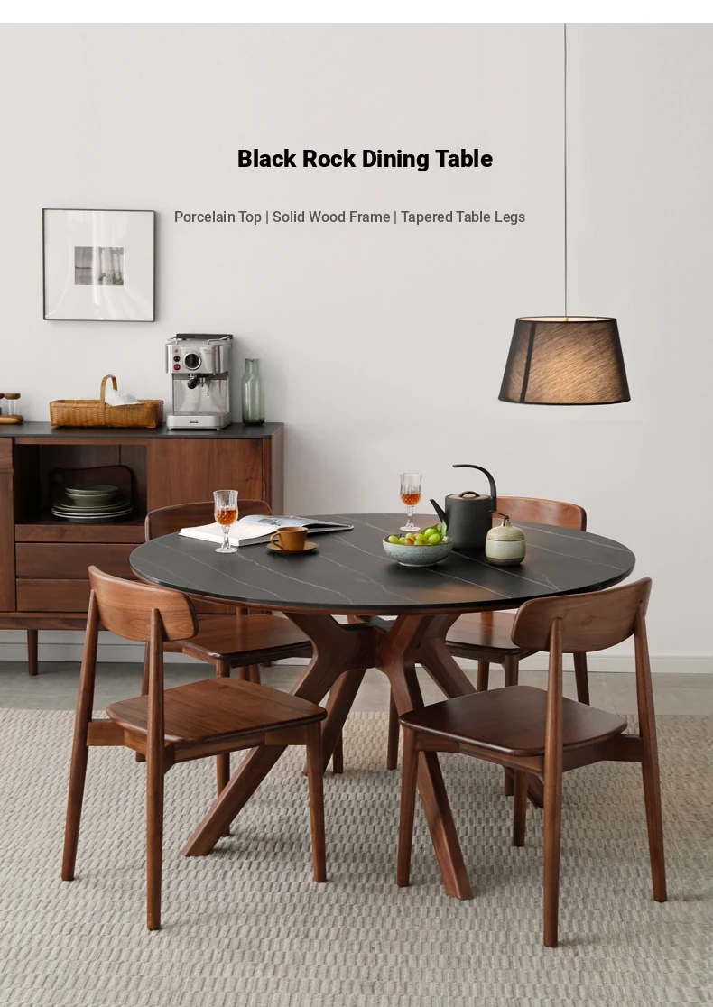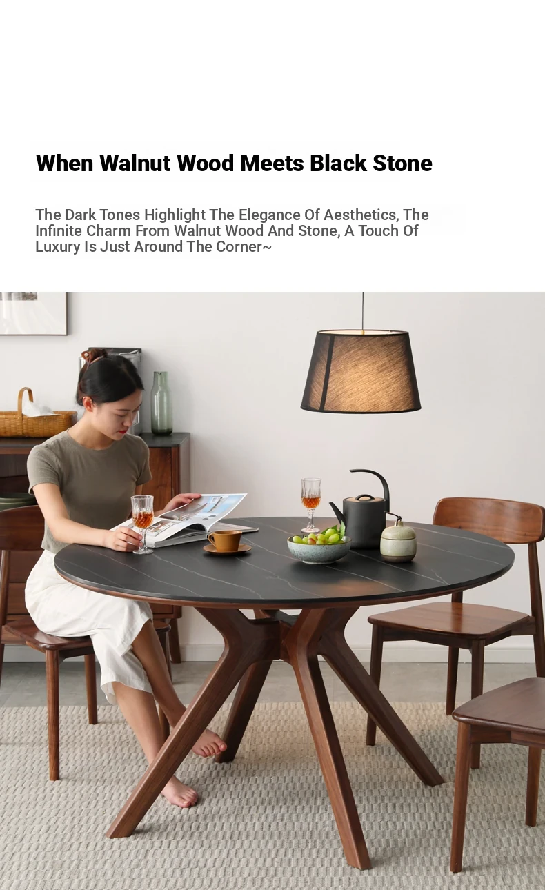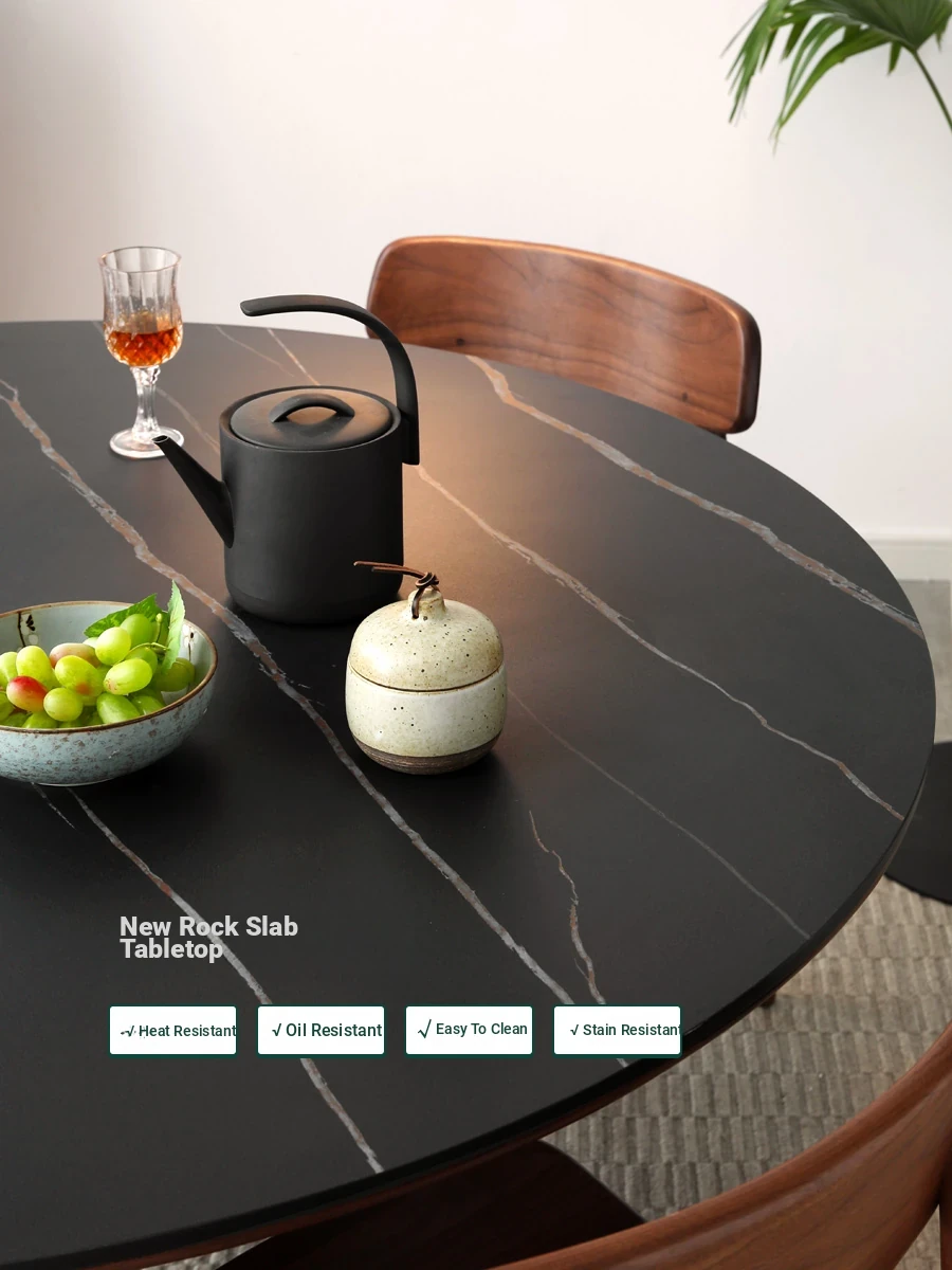 (Nanyang Golden Sandalwood Walnut Color) 47.24 inissa Roland Rock Plate Dining Table (47.24in*47.24in*29.92in)