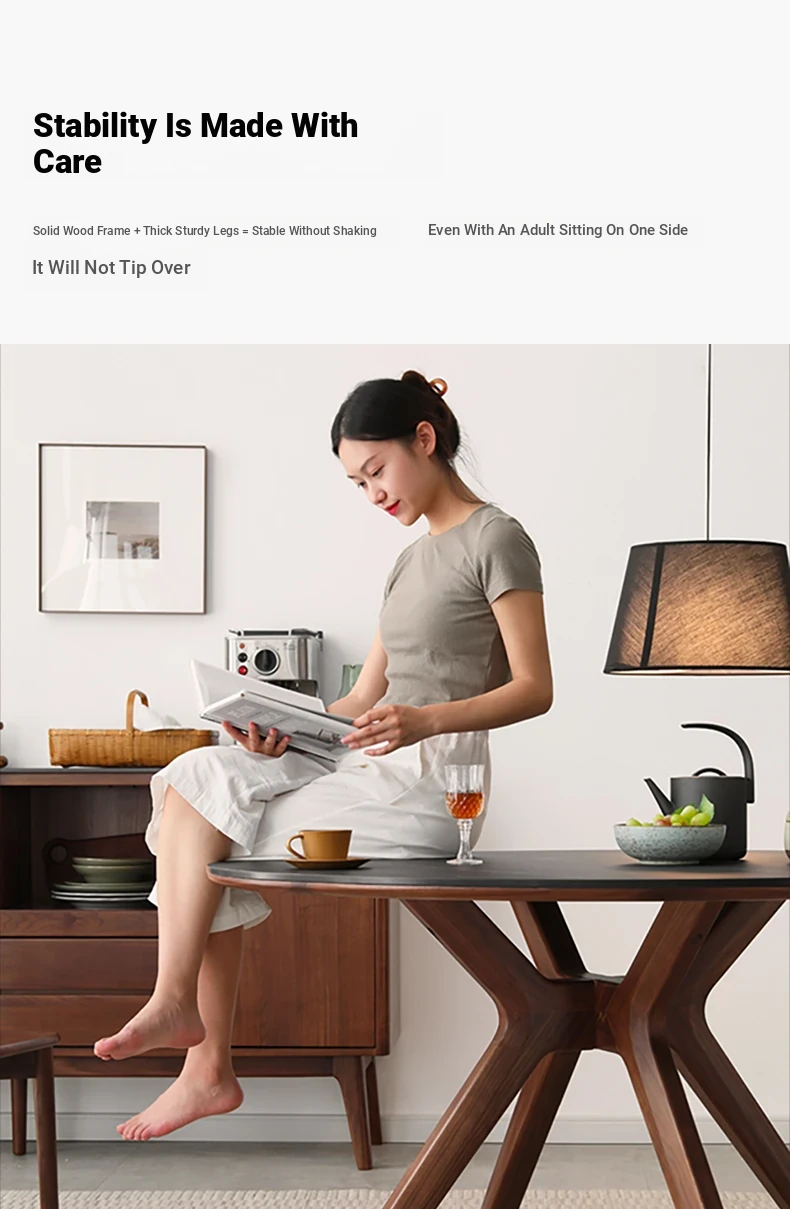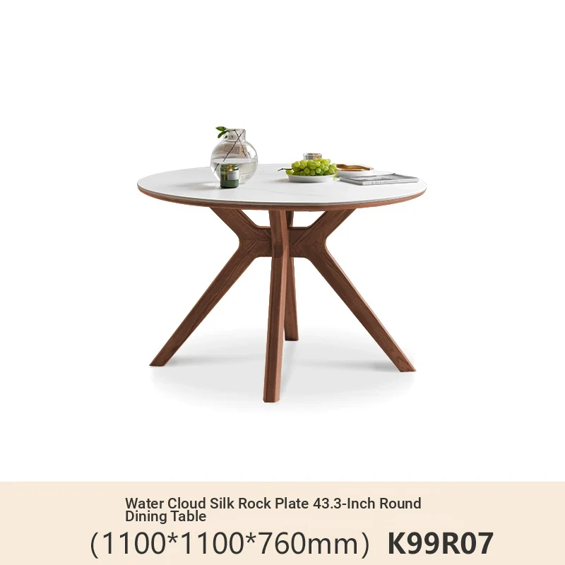 (Nanyang Golden Sandalwood Walnut Color) 43.31 inissa Roland Rock Plate Dining Table (43.46in*43.46in*29.92in)
