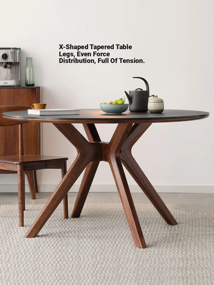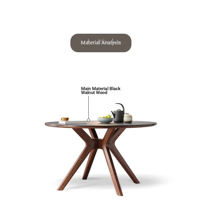 Genji Wood Solid Wood Round Dining Table with Black Walnut Finish - Modern Minimalist Design with Lazy Susan for Home Use, Perfect for Family Gatherings