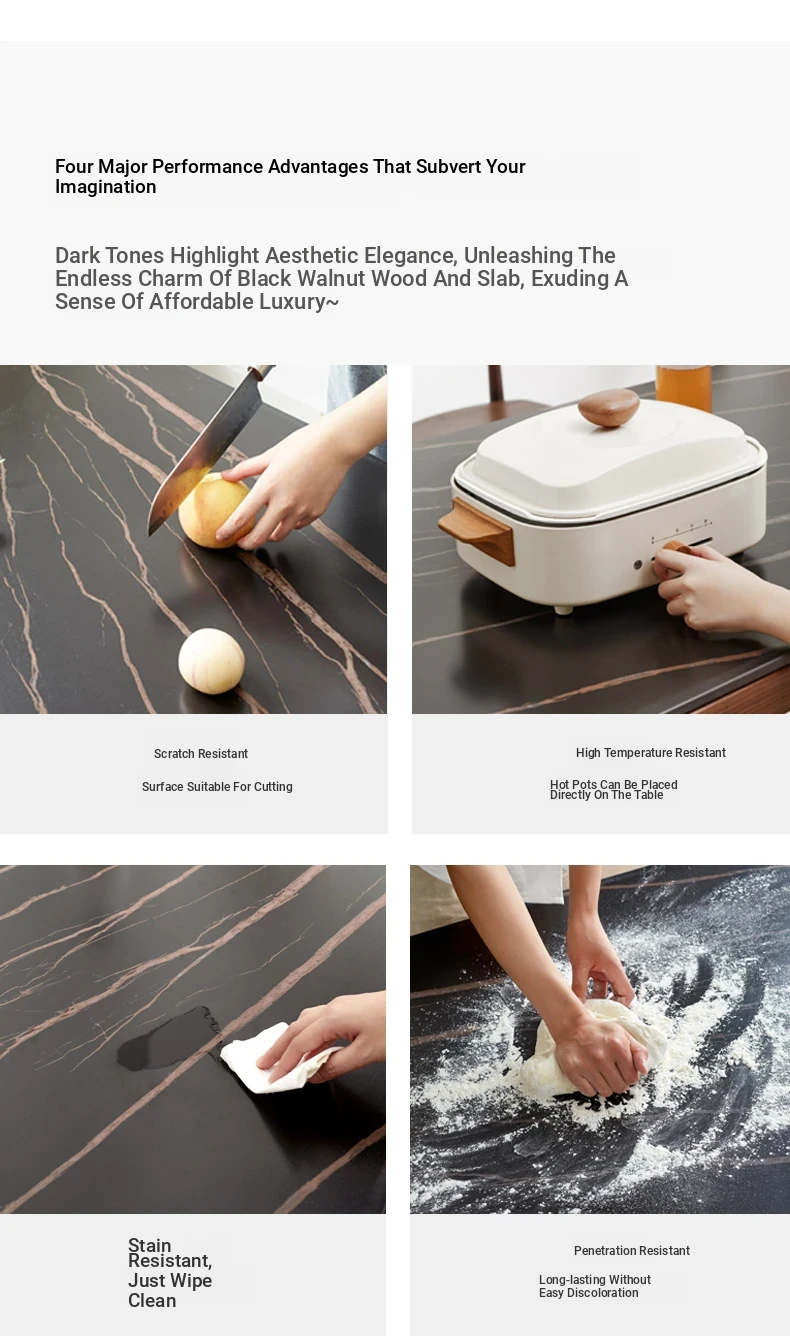 (Nanyang Golden Sandalwood Walnut Color) 47.24 in Water Cloud Yarn Rock Plate Dining Table (47.24in*47.24in*29.92in)