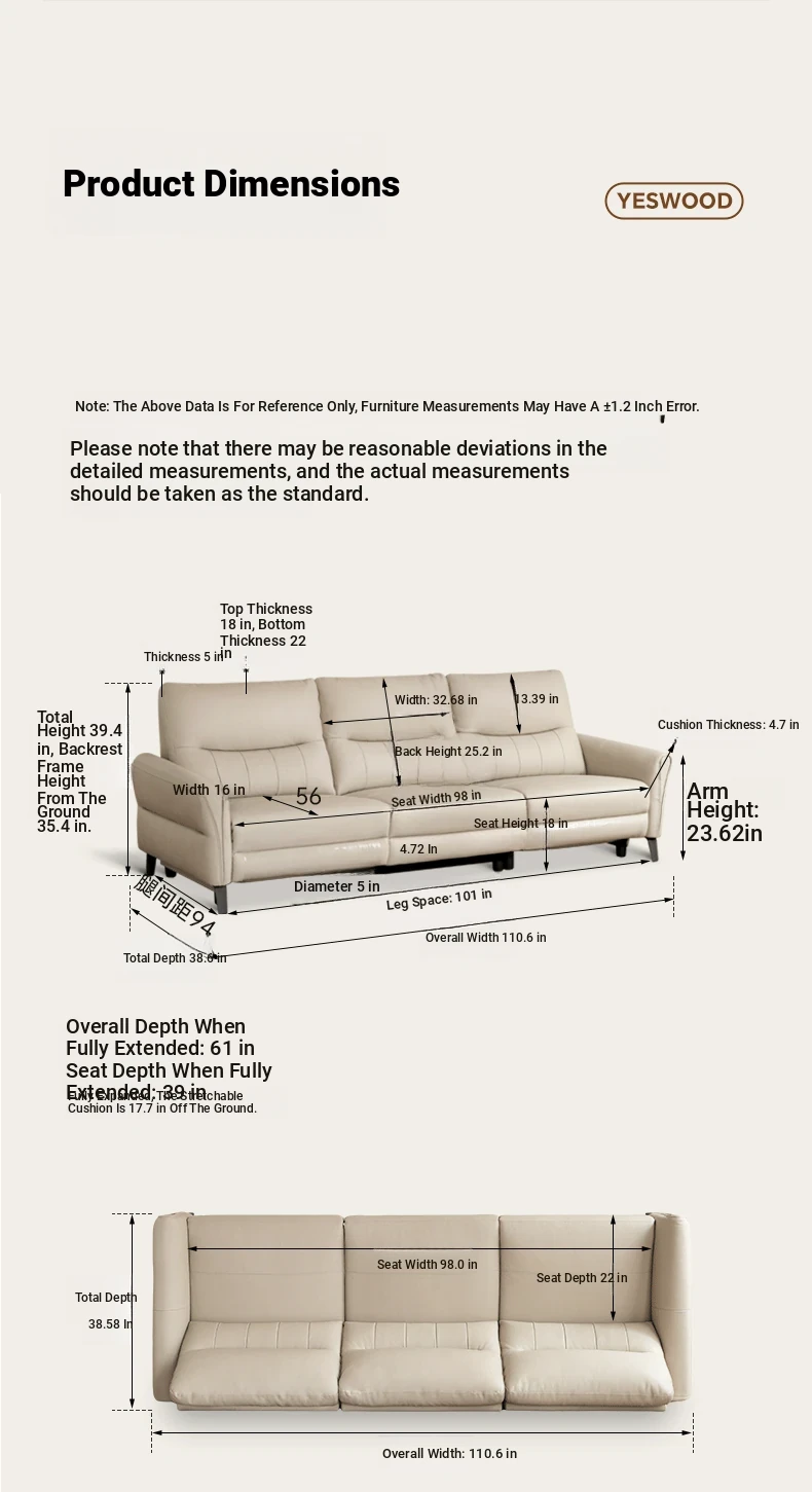 110.63 in double electric (leather rice White)(110.63in*38.58in*39.37in)S03330