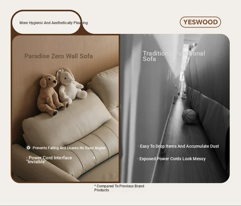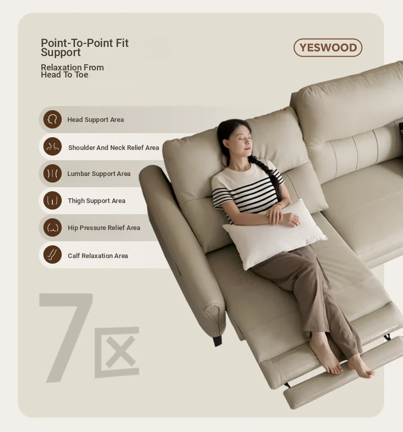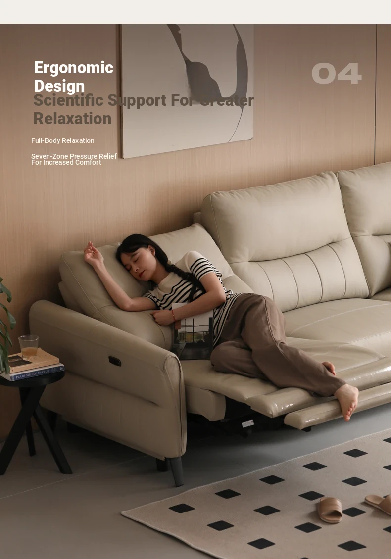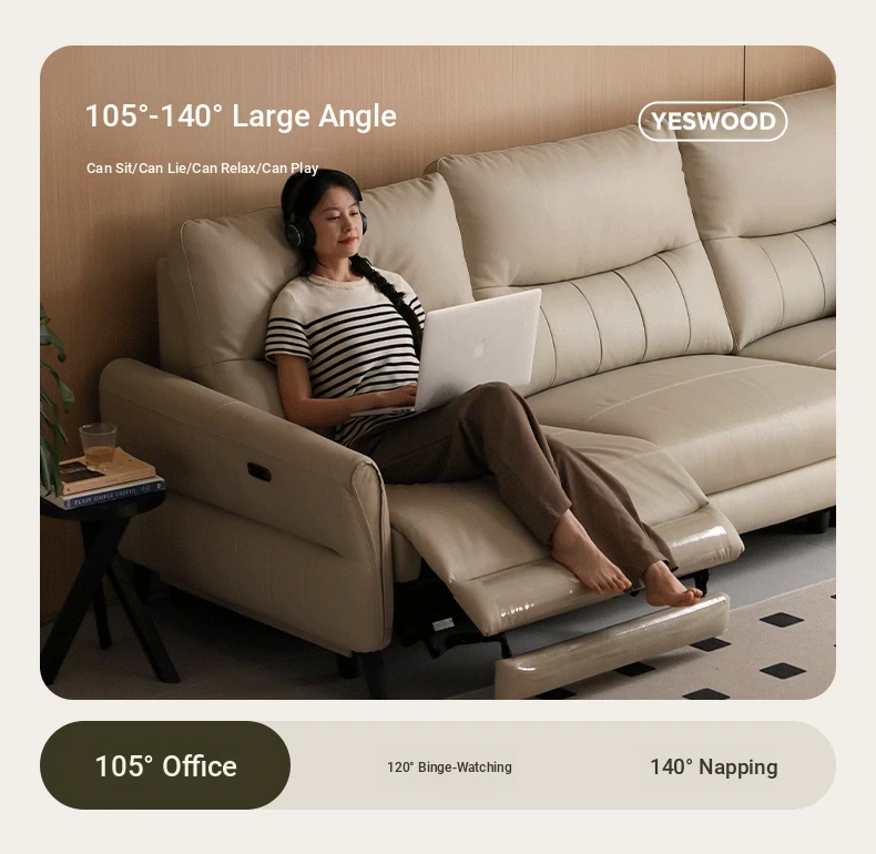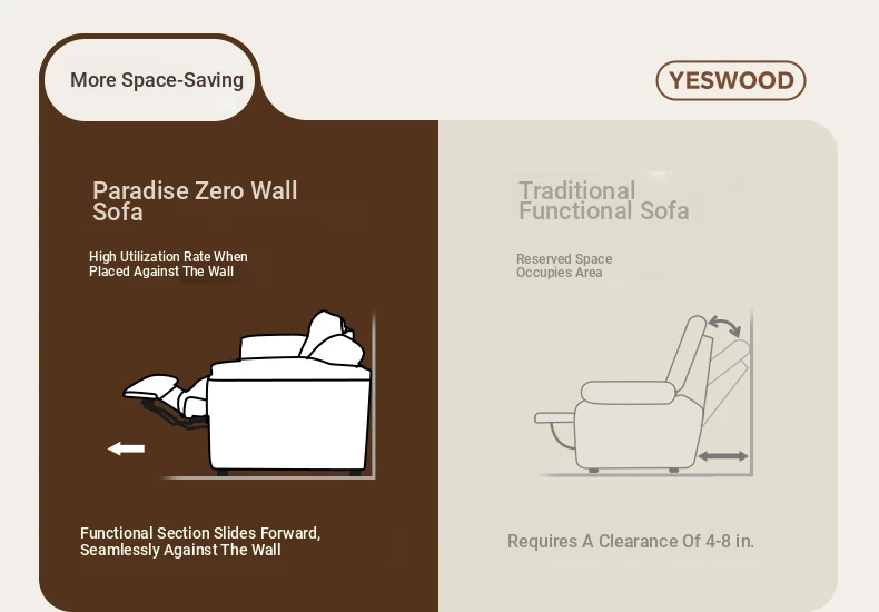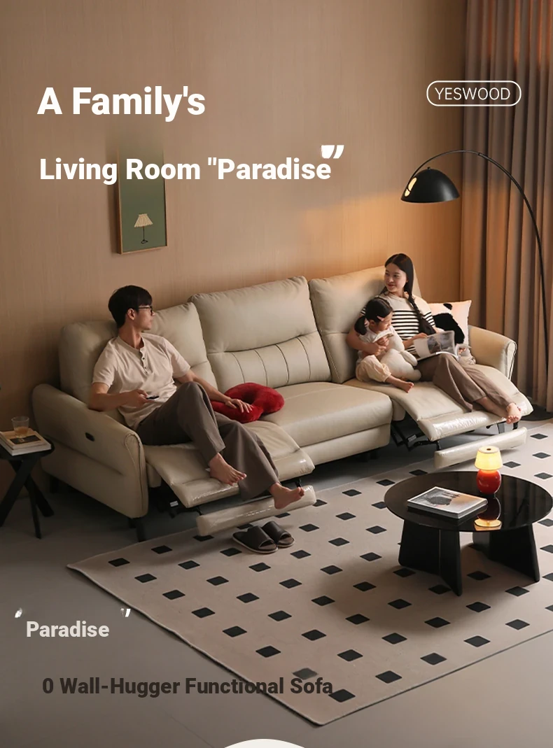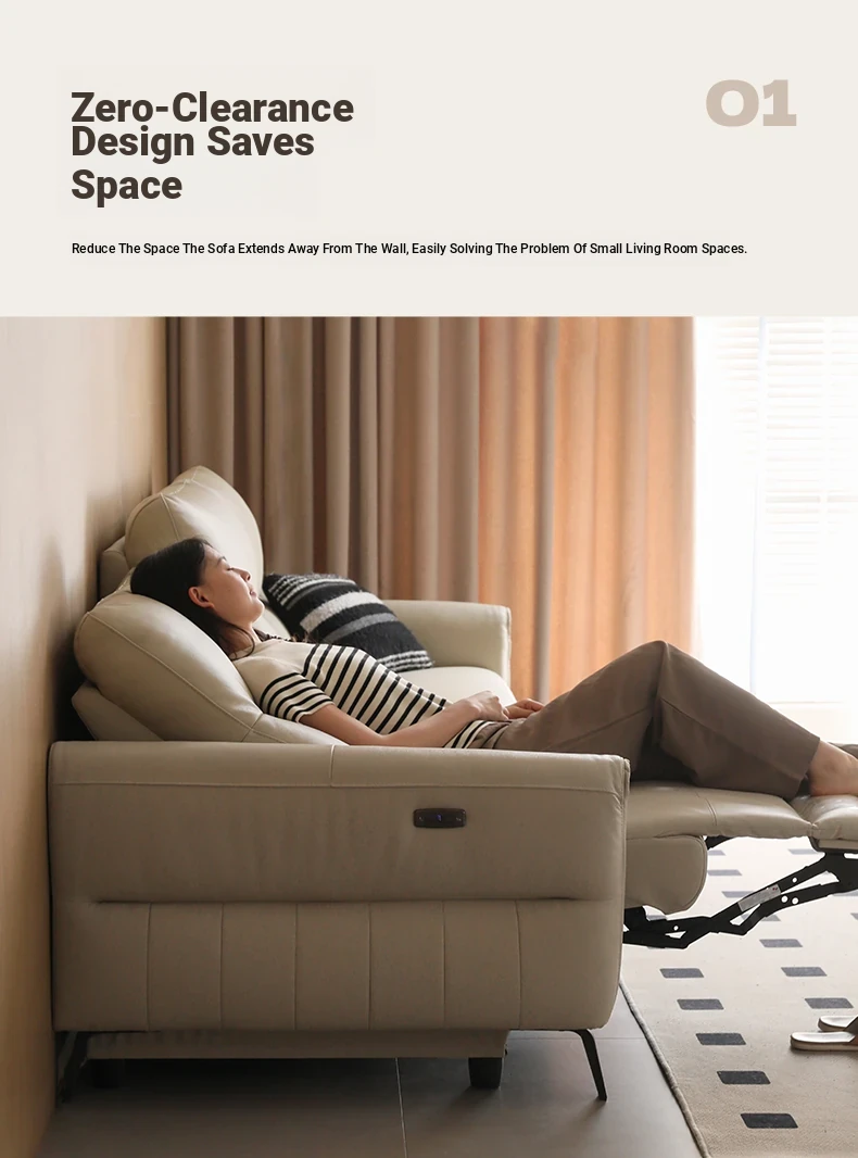 Genji Wood Zero Wall Leather Sofa – Versatile, Adjustable Electric Sofa for Living Room, Perfect for Relaxing and Sleeping, Premium Quality Leather Upholstery