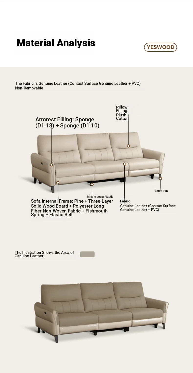 101.18 in left electric (leather rice White)(101.18in*38.58in*39.37in)S03330