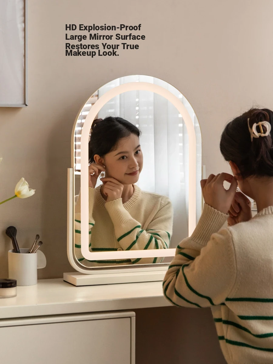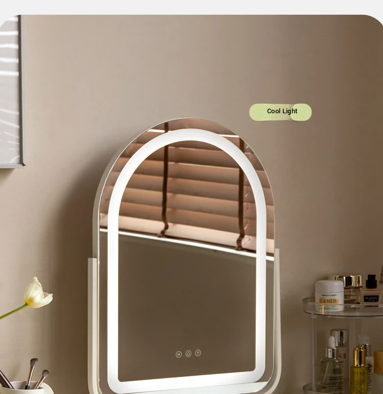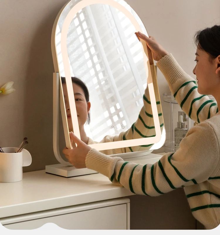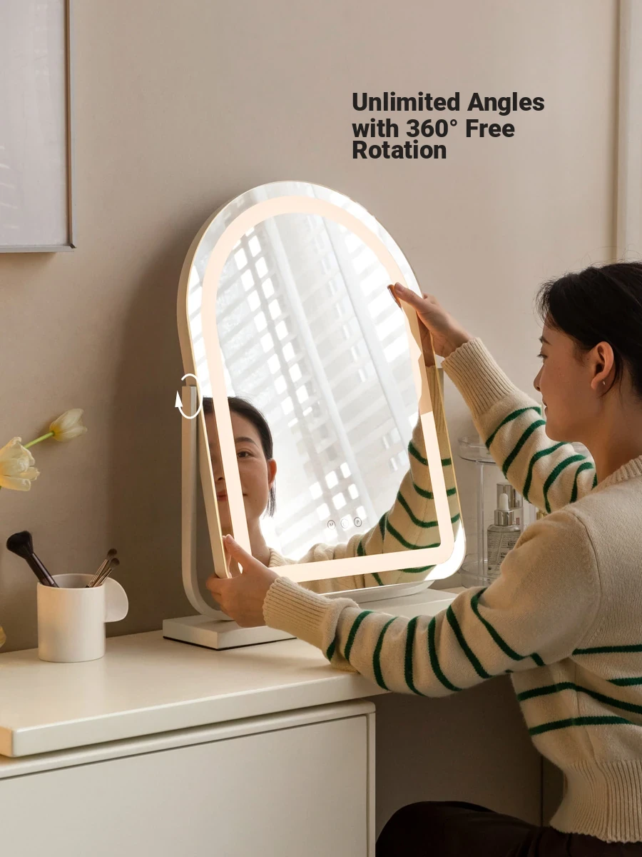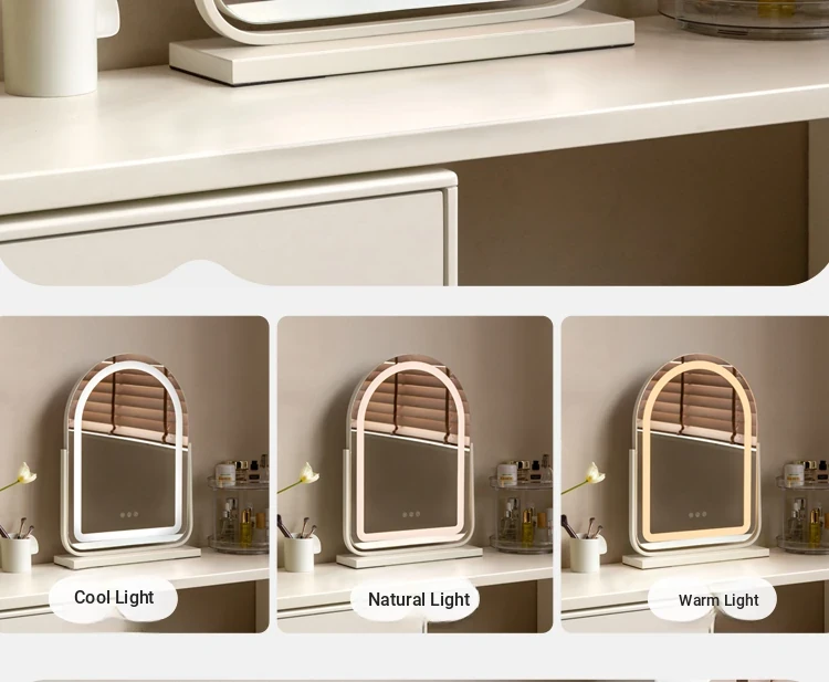 Genji Wooden Luxury Desktop Makeup Mirror - Elegant and Minimalist Rotatable Vanity Mirror with Light, Explosion-Proof Design for Your Bedroom
