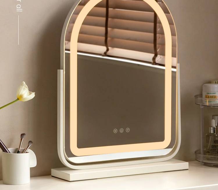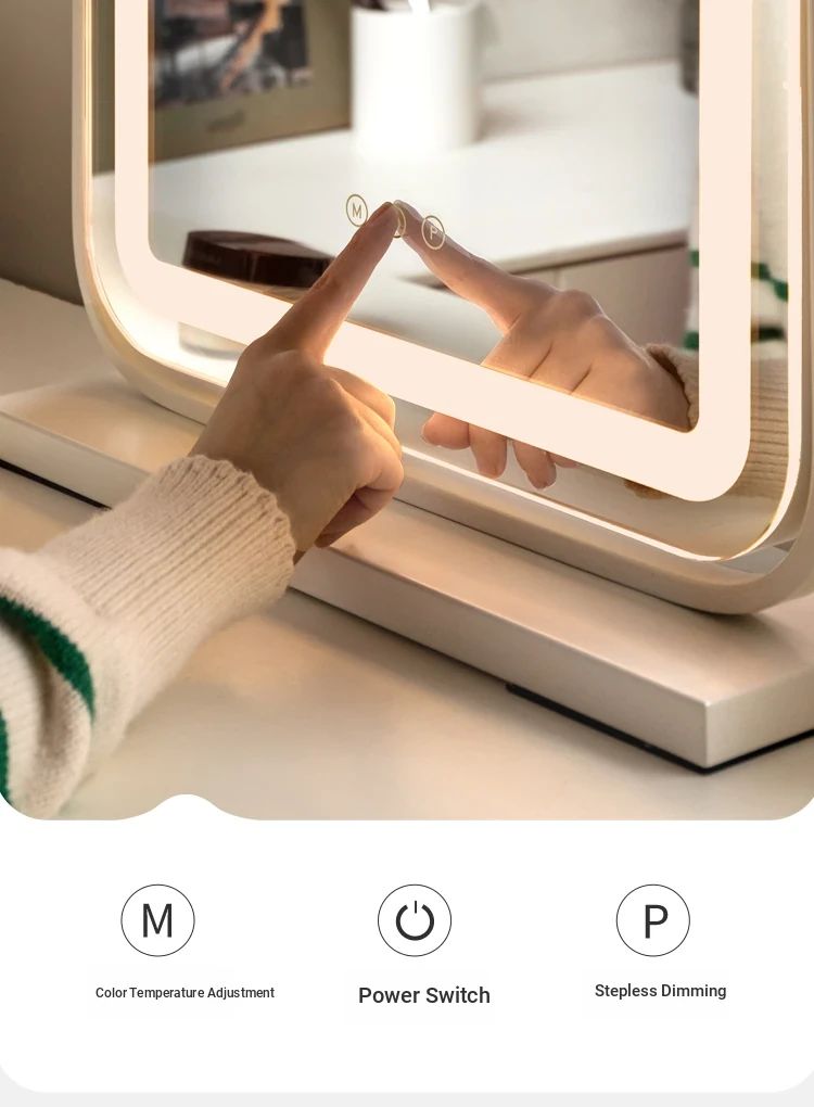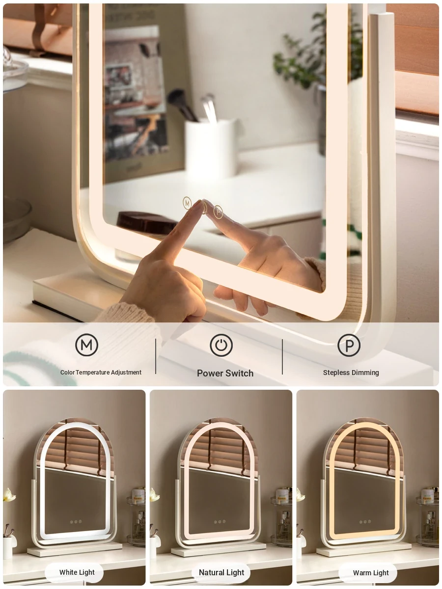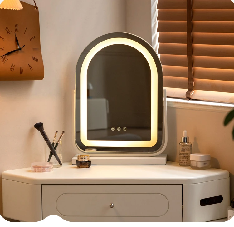 Genji Wooden Luxury Desktop Makeup Mirror - Elegant and Minimalist Rotatable Vanity Mirror with Light, Explosion-Proof Design for Your Bedroom