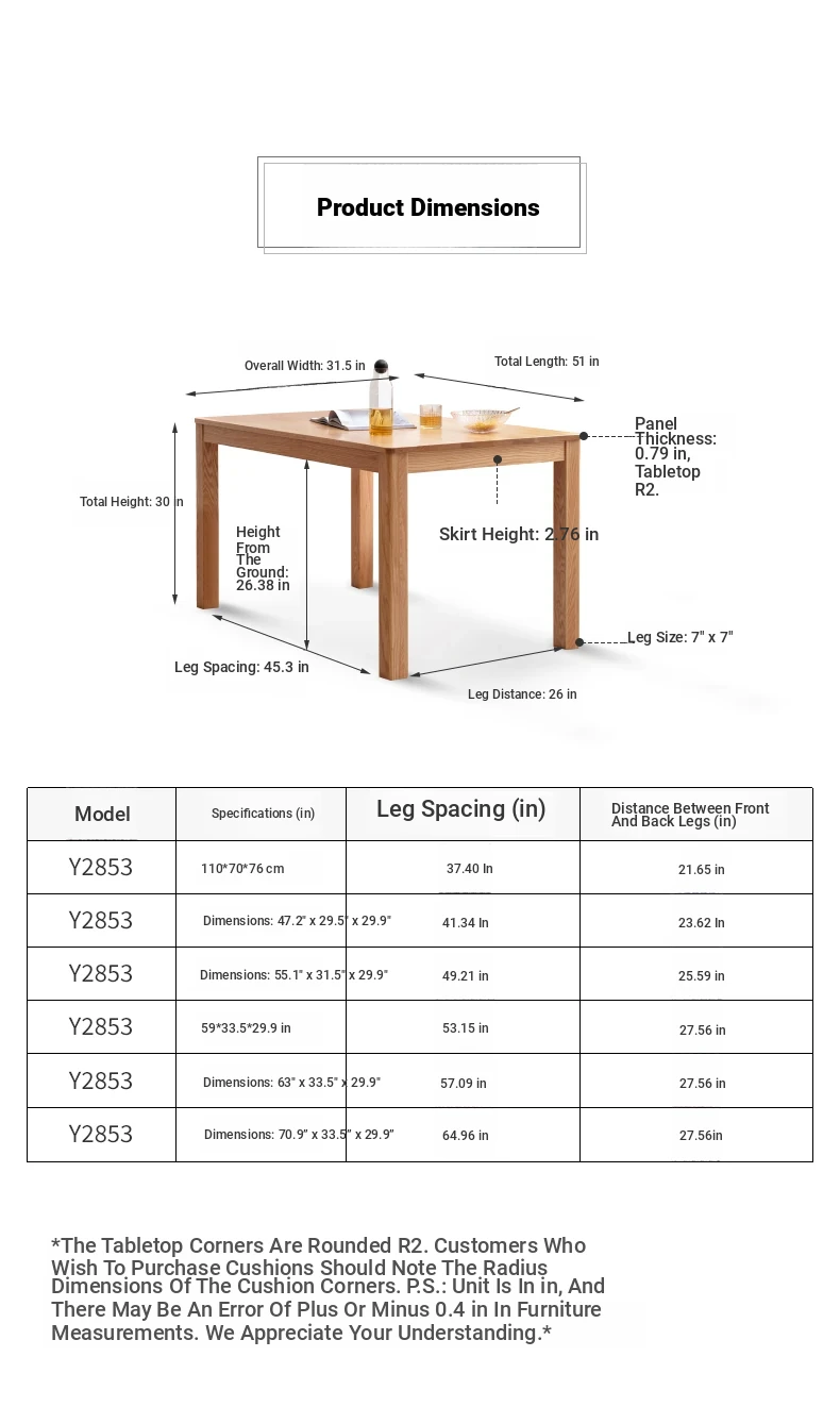 43.31in餐桌(43.31in*27.56in*29.92in)Y2853
