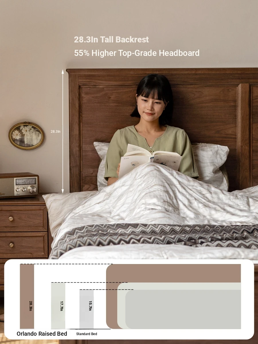 Genji Wooden Furniture Solid Wood Bed - American Vintage Style Black Walnut Platform Bed, Modern Minimalist Design for Your Bedroom, Spacious Double Bed
