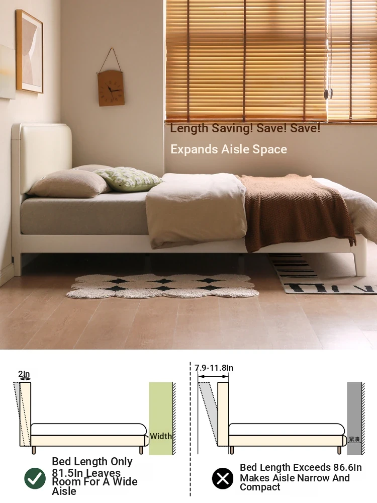 Genji Mu Yu Solid Wood Bed - Modern Cream Soft-Back Double Bed for Bedroom, Minimalist Design with White Edge, Perfect for Home Use.