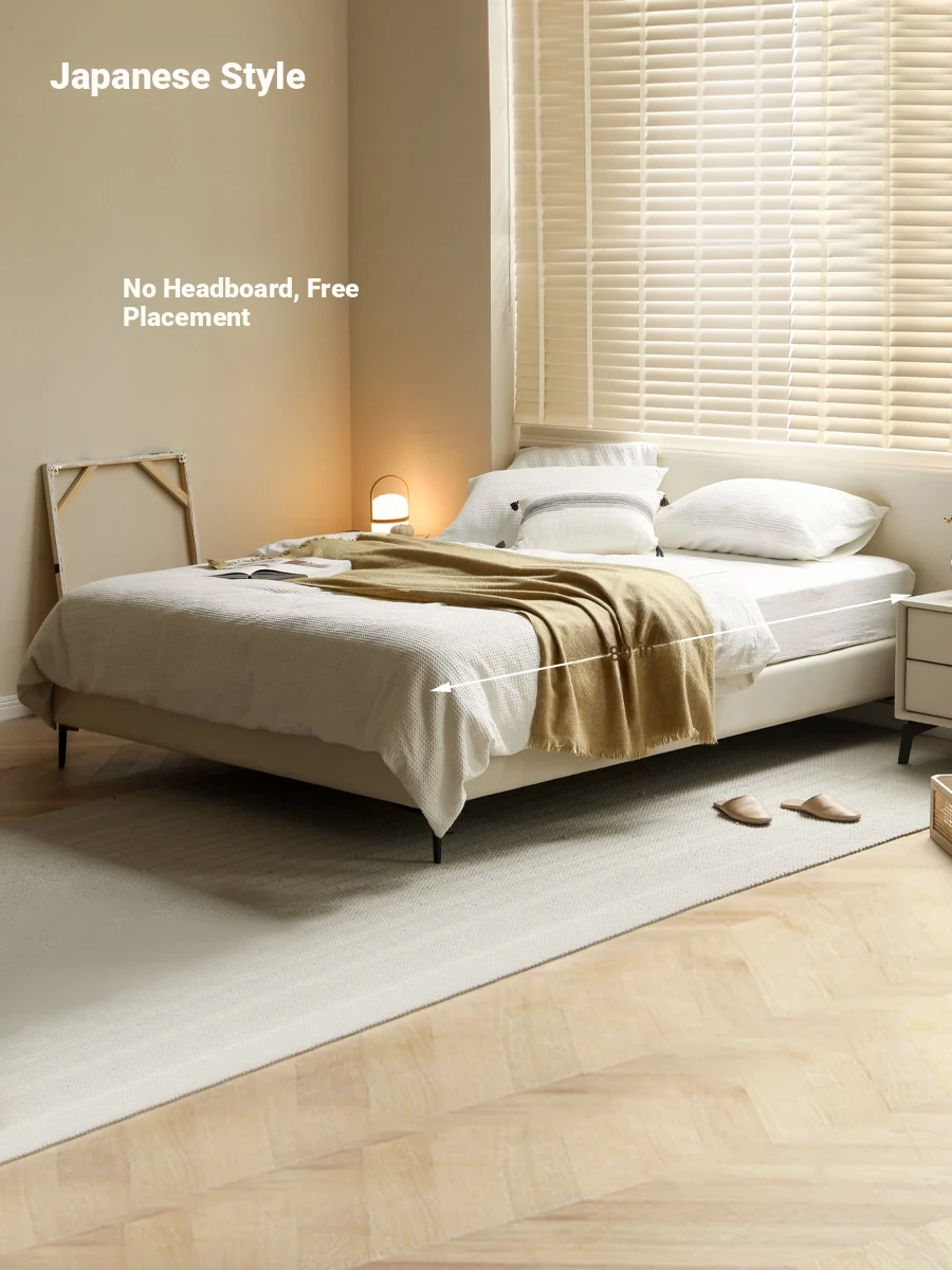 Genji Mu Yu Creamy Modern Tech Fabric Bed – Headboard-less Tatami Style, Minimalist White Double Bed for Contemporary Bedrooms