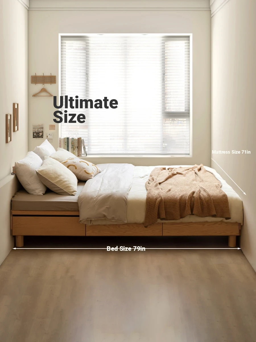 Genji Mu Yu Solid Wood Tatami Bed - Double Bed with Japanese-Style Storage Drawers, Minimalist Oak Storage Solution, Perfect for Organizing Your Space