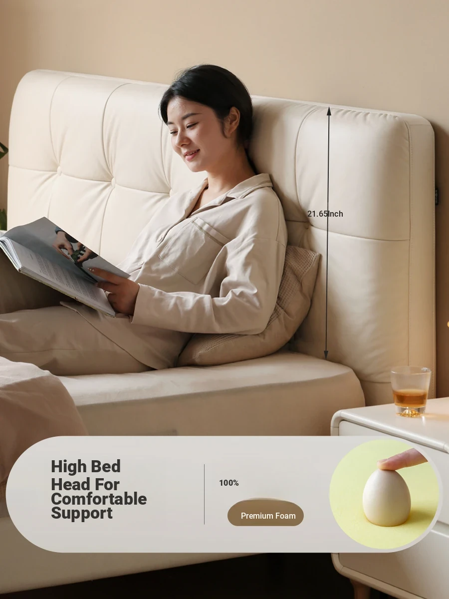 Genji Muju Leather Bed – Modern Minimalist Soft-Corner King Size Bed in Creamy White for a Luxurious Touch in Your Master Bedroom, Perfect for Couples!