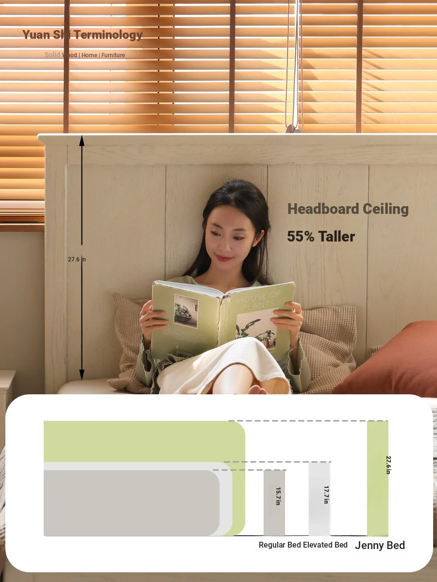 Genji Muju Solid Wood Bed - Rustic Oak American Style High-Back Double Bed, Modern Minimalist Large Panel Design, Elegant White Family Bed for Ultimate Comfort and Style