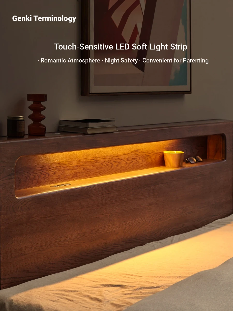 Genji Wood Solid Wood Bed - Modern Minimalist Oak Storage Bed (1.5m / 1.8m) for Nordic Bedroom, King-Size Double Bed with Under-Bed Drawers