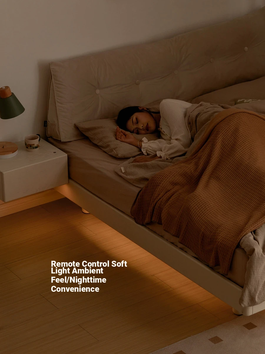 Genji MuYu Solid Wood Storage Bed – Modern Minimalist Floating Bed with Night Light and Headboard Storage for Your Bedroom - Understated Elegance Meets Functionality