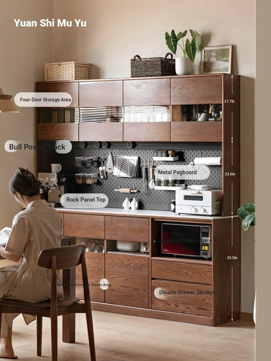 Genji Muyu Solid Wood Sideboard - Tall Cabinet with Ample Storage Space for Home Organization, Wall-Mounted Design, Perfect for Dining Rooms and Kitchen Storage