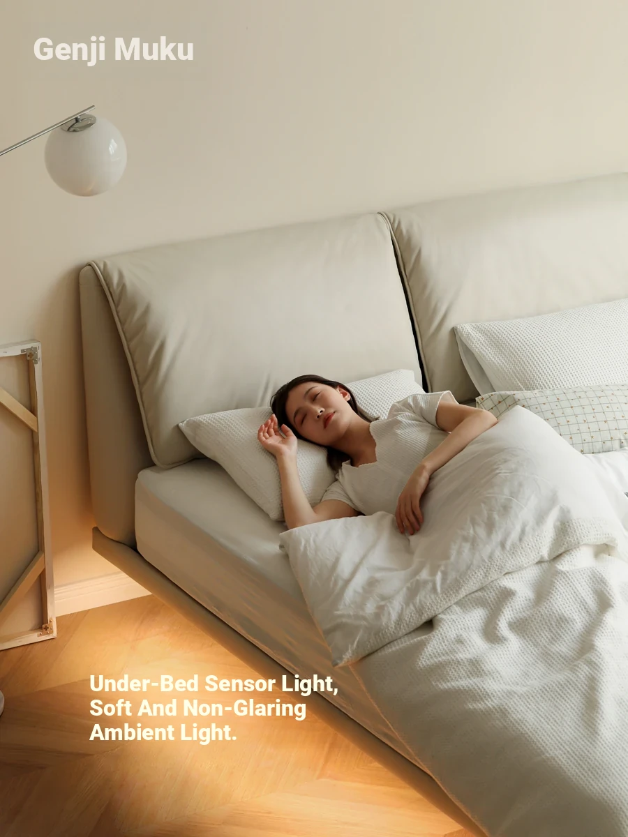 Genji Mu Yu Creamy Style Elephant Ear Bed - Soft Pack Bed with Ambient Lighting, Stylish Tech Fabric for a Cozy Bedroom Atmosphere.