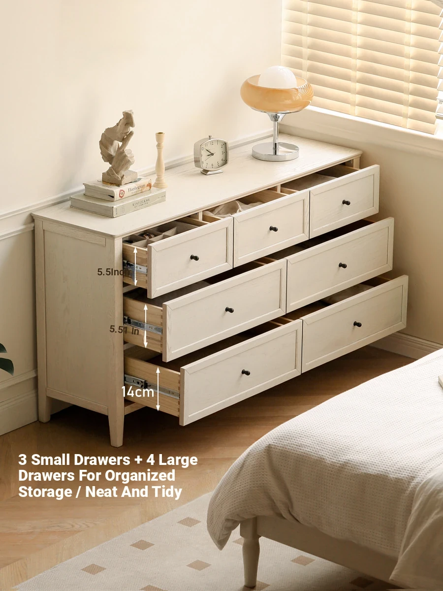 Genji Mu Yu Solid Wood Dresser - Modern Minimalist 7-Drawer American-Style Cream White Bedroom Storage Cabinet, Perfect for Your Stylish Home Decor
