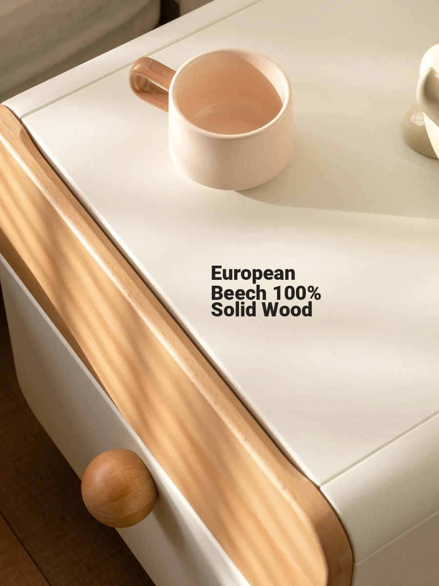 **Zenith Natural Wood Bedside Table - Elegant Cream-Color Bedroom Storage Cabinet with Minimalist Design & White Drawers for Stylish Home Decor**
