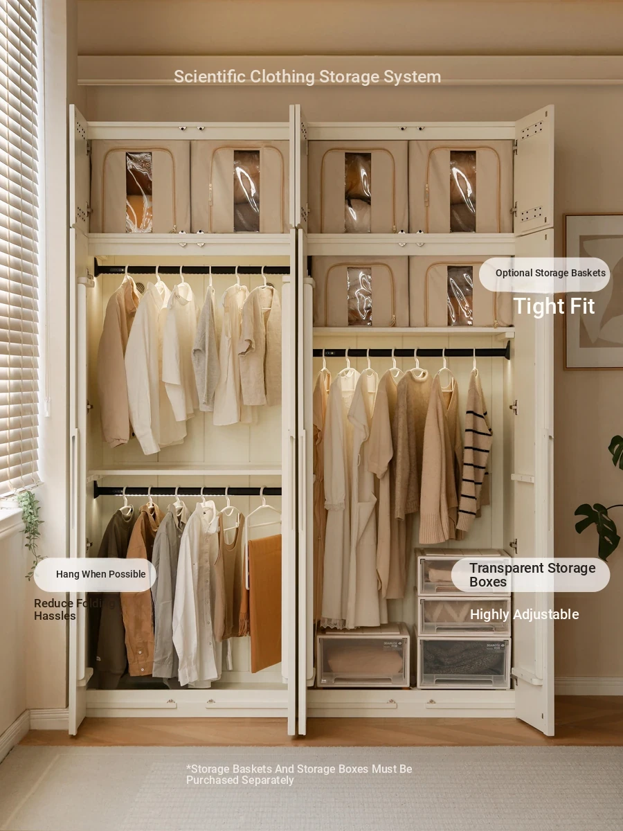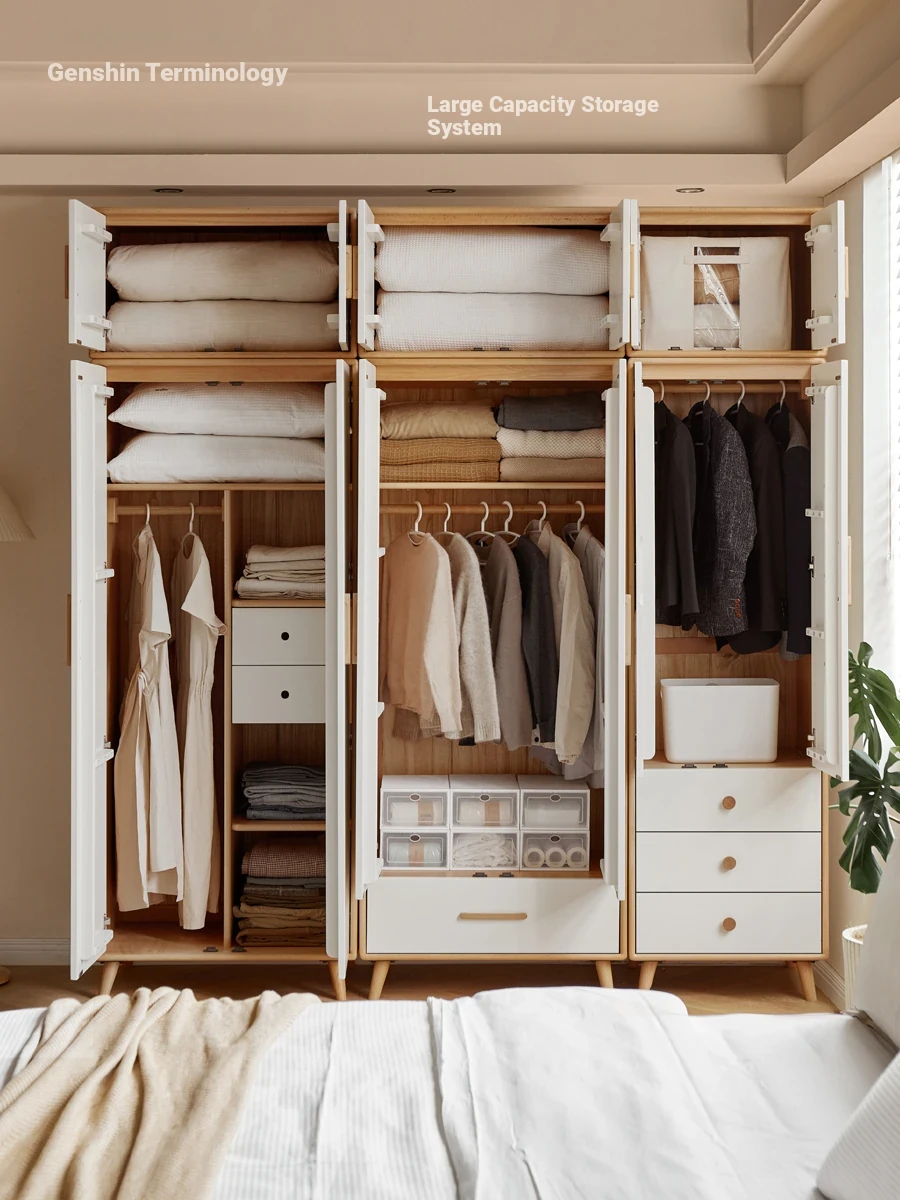 Genji Wood Natural Solid Wood Wardrobe - Versatile Bedroom Clothing Storage Cabinet, Customizable Design in Elegant White Finish for Stylish Home Organization