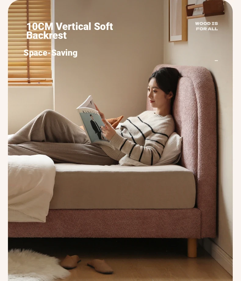 源氏木語 フランス風 布張りベッド 小型シンプル ソフトパック 二人用ベッド 主寝室向け ピンク色 互いに干渉しない設計 快適な睡眠空間を提供!