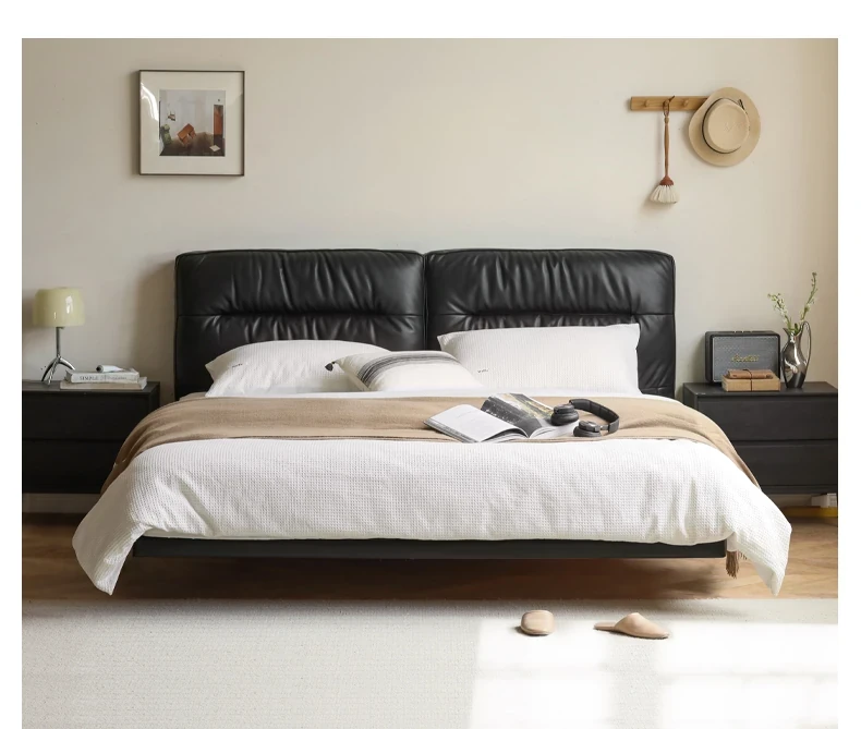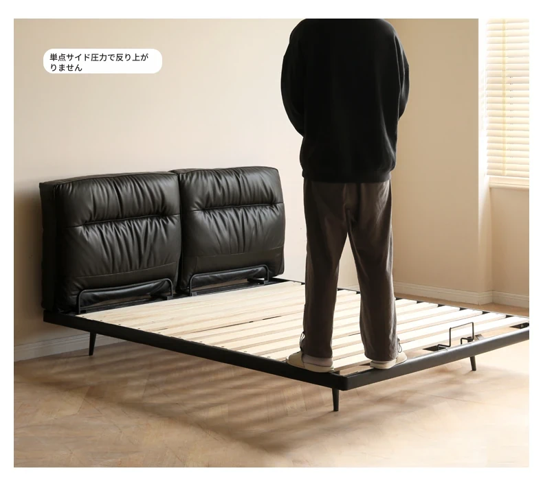 源氏木語 本革使用のモダンシンプルデザイン 二人用浮遊ベッド 照明付き イタリアンソフトパッケージ 夢のような寝室を実現!