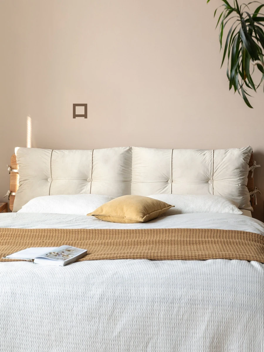 源氏木语・モダンミニマリストのベッドサイドソフトクッション|洗える取り外し可能なロープ付き・腰サポートピロー・おしゃれな大きな背もたれで快適な睡眠を!