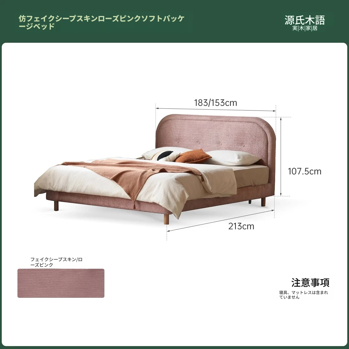 源氏木語 モダンシンプル 布張りソフトベッド 小型住宅向け ダブルベッド 主寝室用 ピンク ベッドで心地よい眠りを体験しよう!