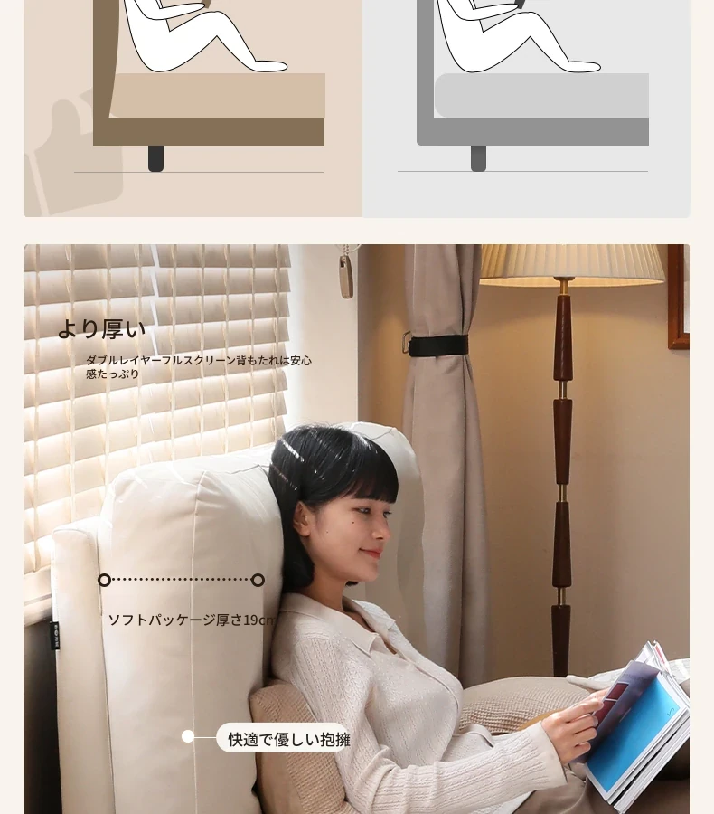 源氏木語 モダンシンプル布製ダブルベッド | リラックスできるクリーム風の主寝室に最適!白を基調とした柔らかなファブリックが、心地よい空間を演出します。