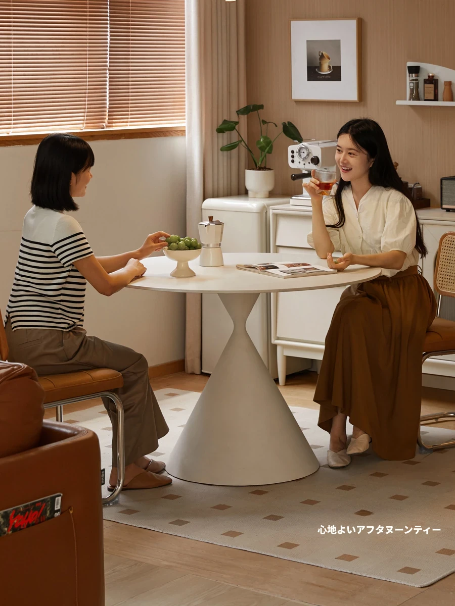 源氏木語のモダンシンプルなクリーム風ローレンフロアテーブル - 小さなお部屋にもぴったりな丸型ダイニングテーブル、家族の食事を楽しく演出します!