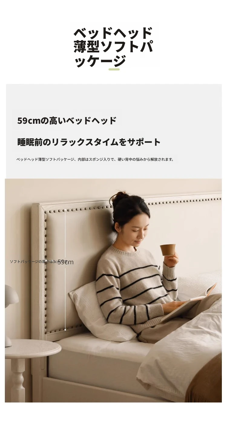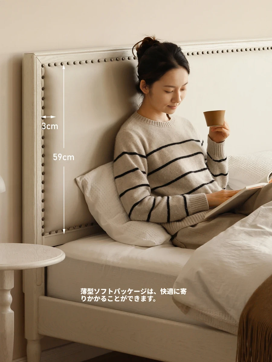 無垢材ソフトバックベッド+ナイトテーブル(Y220A05)Y160B10
