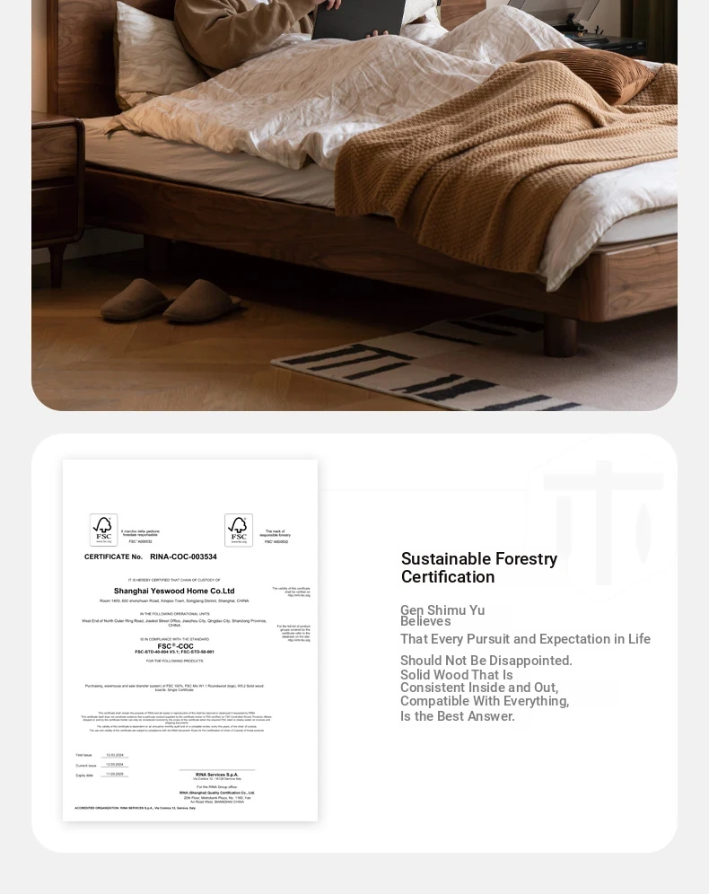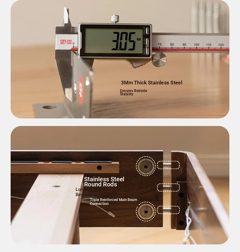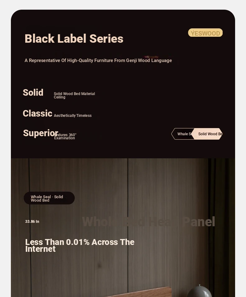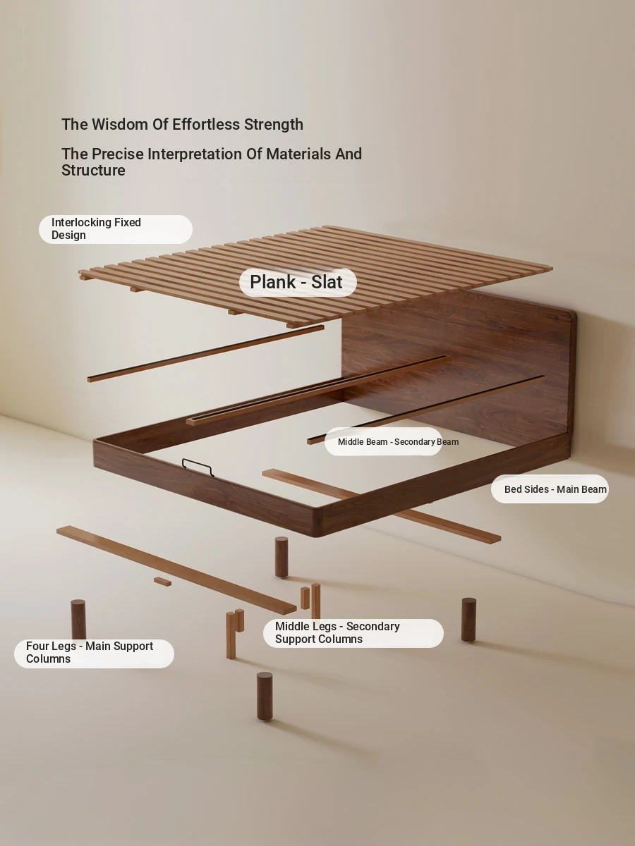 源氏木语フルオーク材使用 モダンシンプル ブラックウォールナット ダブルベッド ブラックラベル 浮遊感デザイン 小型住宅向け サイド一体型 ベッド