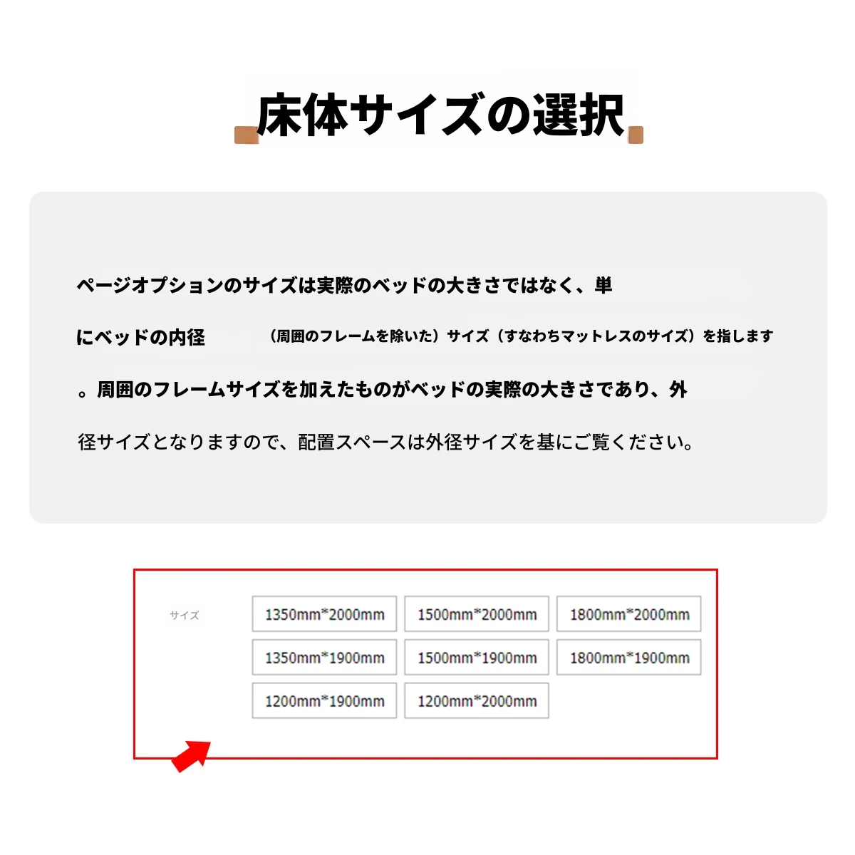 サイズオプションは内径で、実際の占有スペースは外径で計算