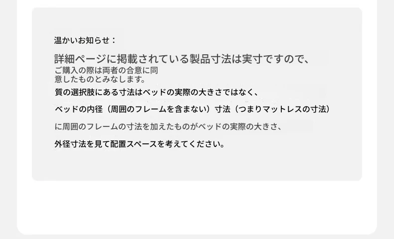 サイズオプションは内寸であり、実際の占有スペースは外寸で計算します