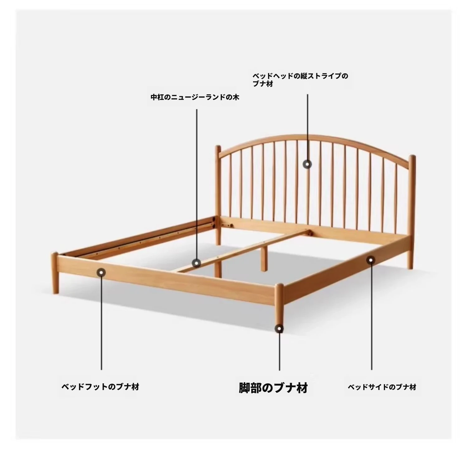 源氏木语の本格的な無垢材ベッド|ホワイトハープデザインの現代的でシンプルなクリーム風スタイル|1.5m・1.8mのダブルベッド|心地よい寝室空間を演出します!