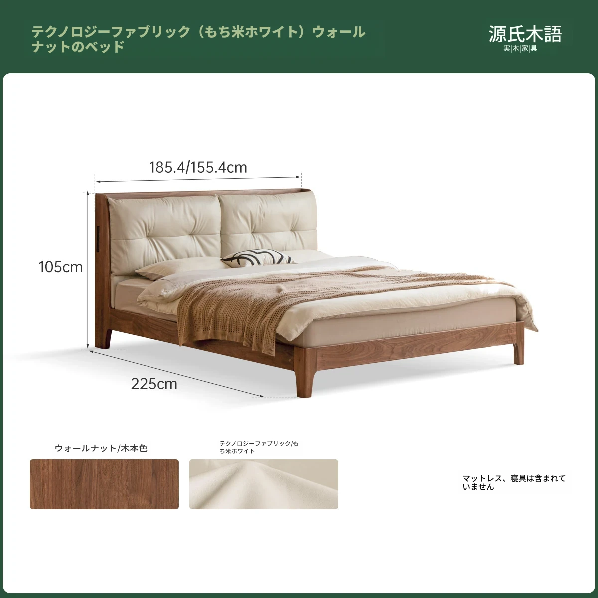 (南洋金檀木胡桃色)テキスタイル(もち米白)ブラックウォールナットベッド