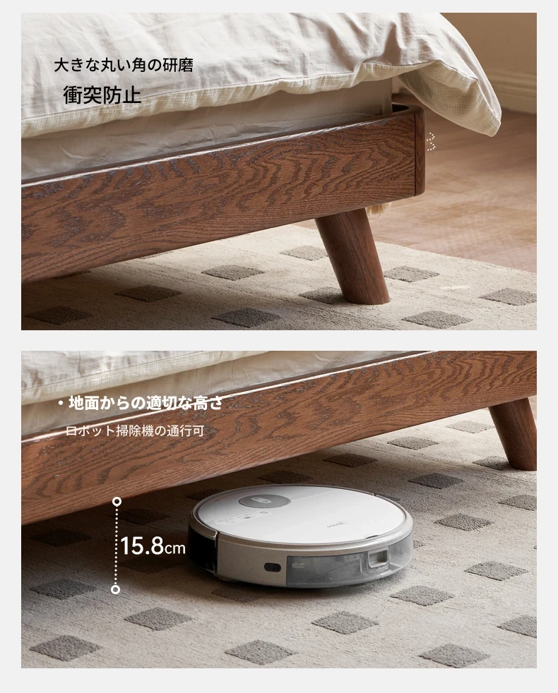 源氏木语オーク材使用!スタイリッシュなソフトパッド付きダブルベッド(1.8m) - 北欧風のシンプルモダンデザイン、1.5mサイズもご用意!主寝室にぴったりな高級感あふれる家具。