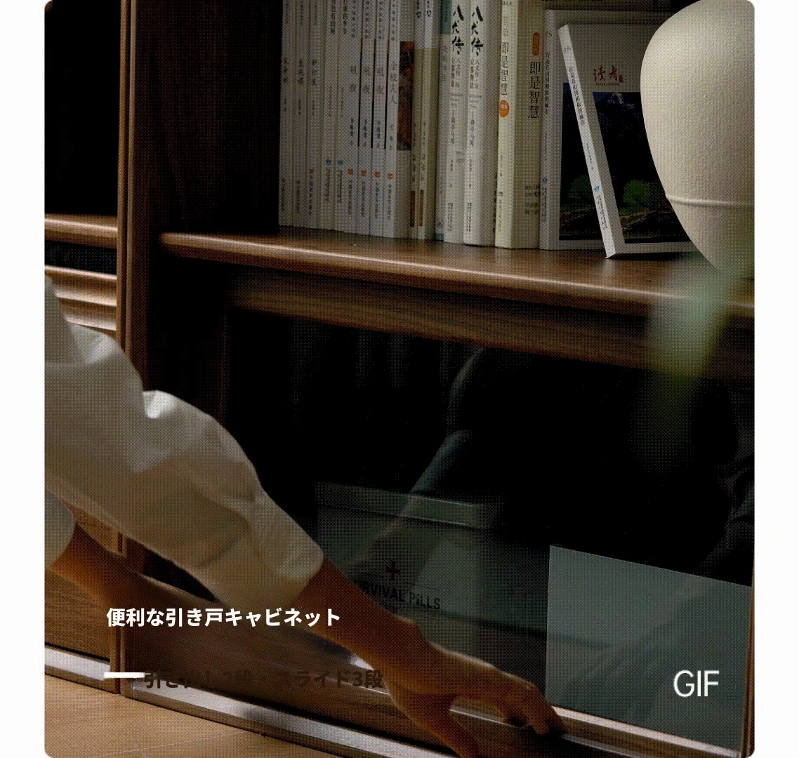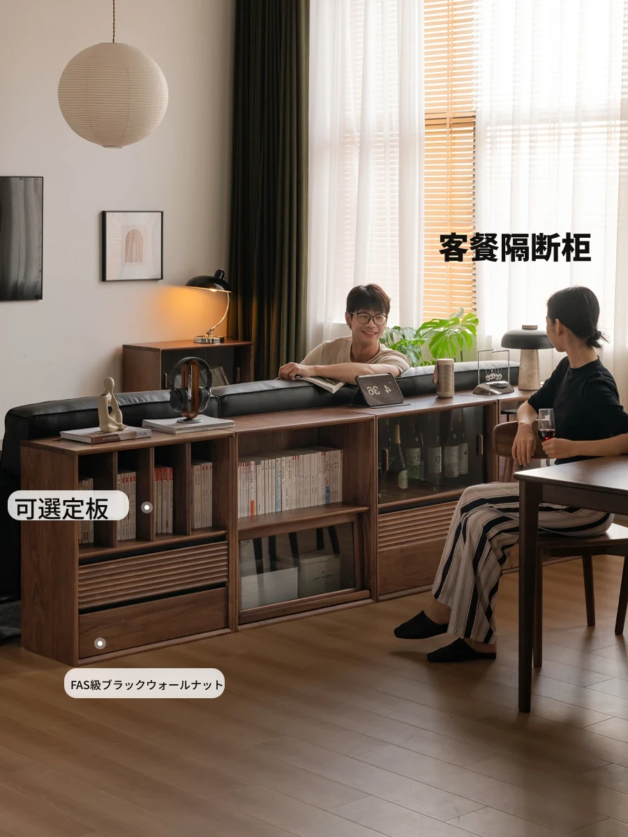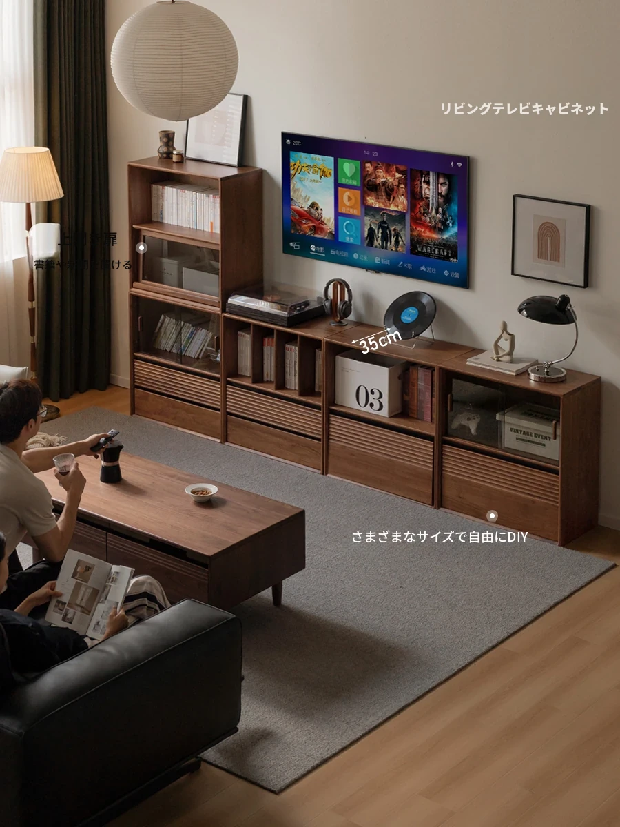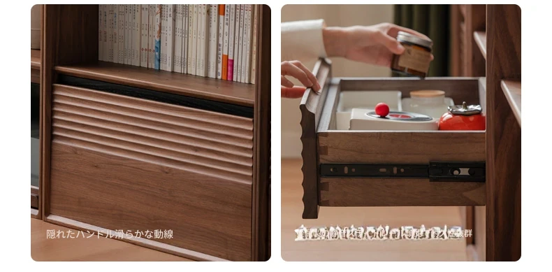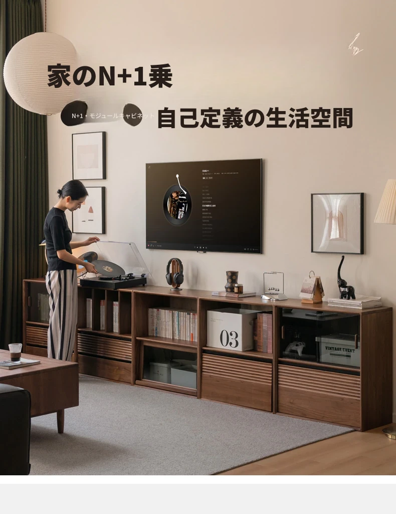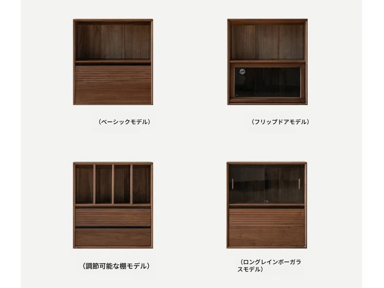 源氏木语の無垢材書棚|上質なナチュラルスタイルのモジュール式収納|ブラックウォルナット材使用|美しいガラス扉でおしゃれに整理整頓できる家庭用書庫