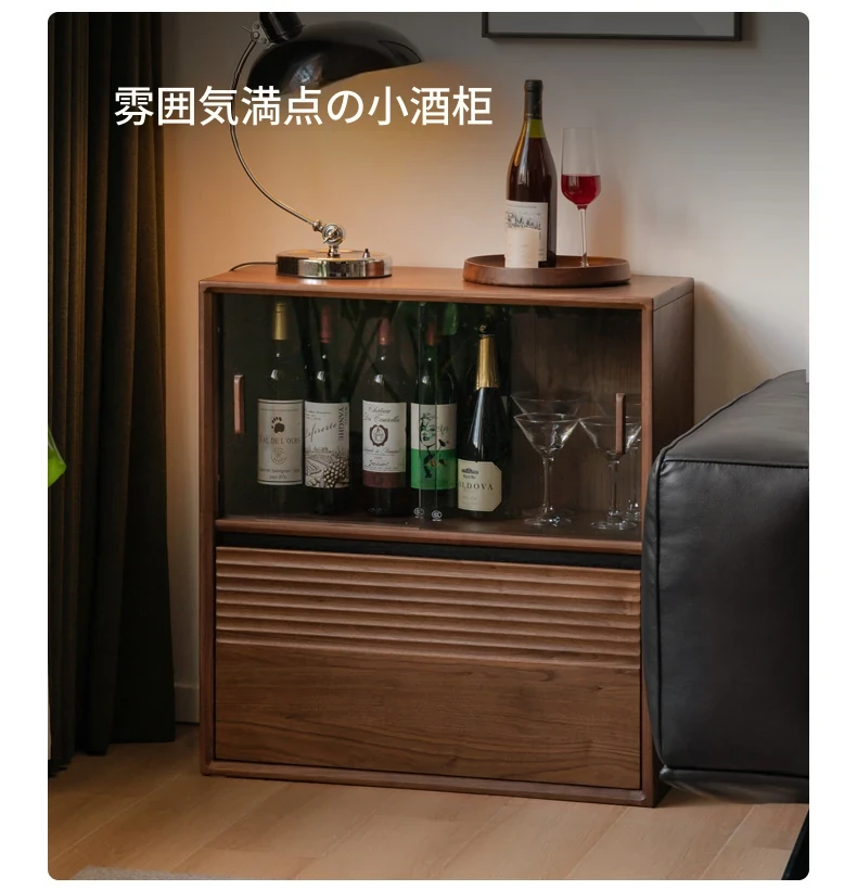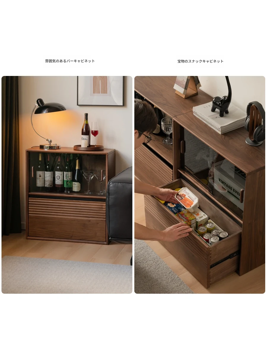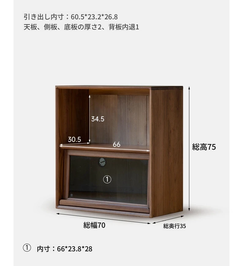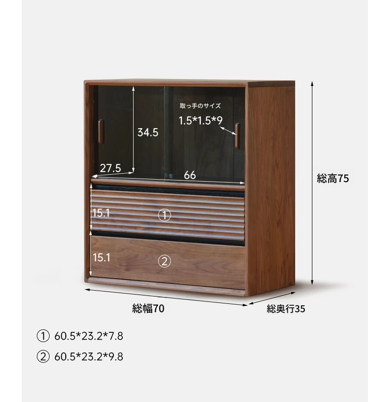 (ブラックウォールナット)0.7メートル二重引き戸キャビネット(700*350*750mm)K182Y02