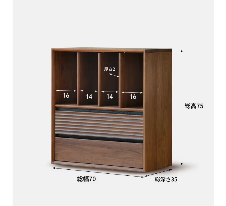 (ブラックウォールナット)0.7メートル二重引き出しオープンキャビネット(700*350*750mm)K182Y02