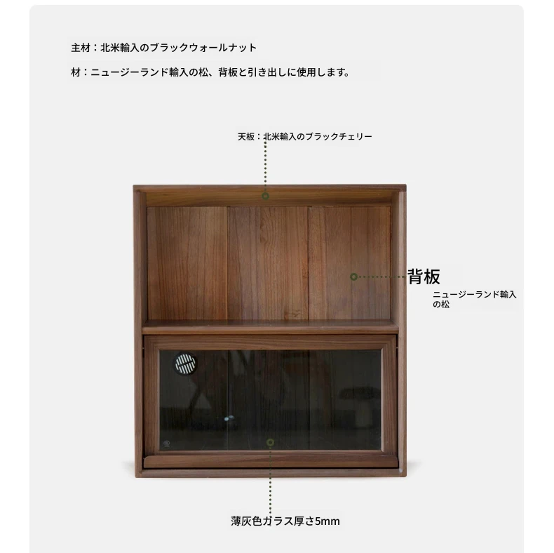 (南洋金檀木クルミ色)0.7メートル単引き戸キャビネット(700*350*750mm)